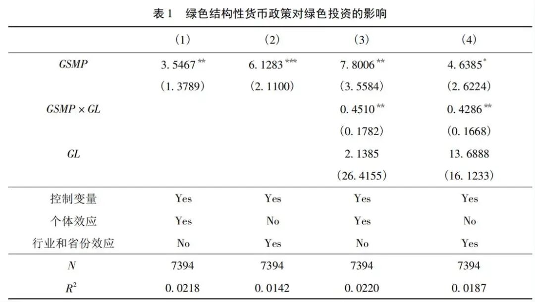 1.GSMP对绿色投资的基准影响与信贷渠道
