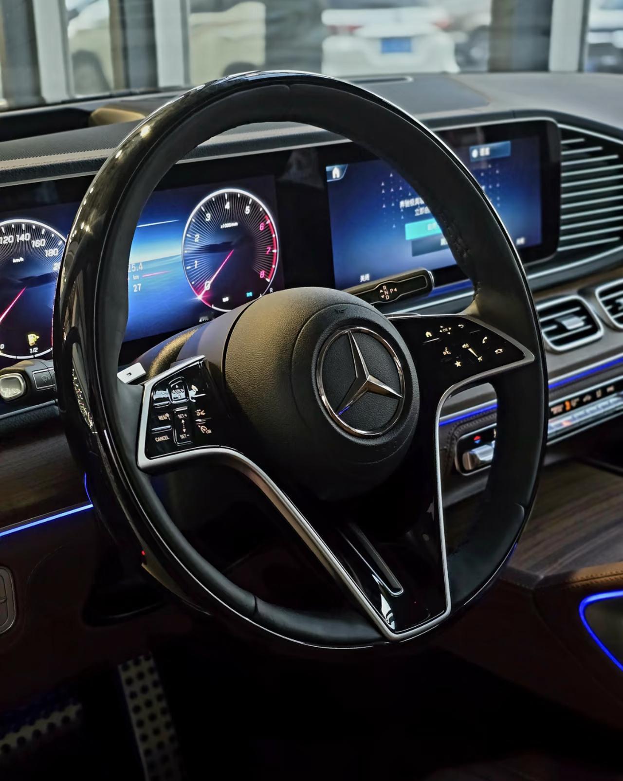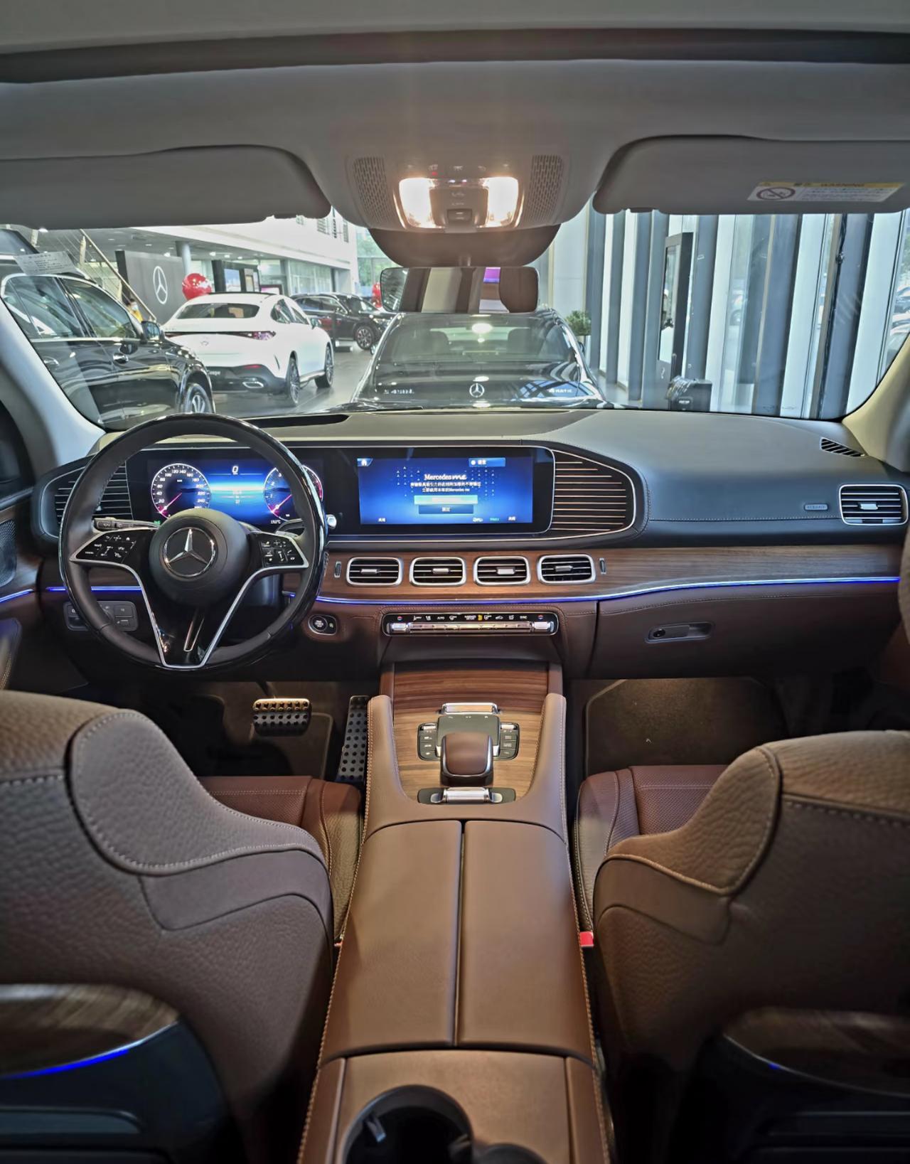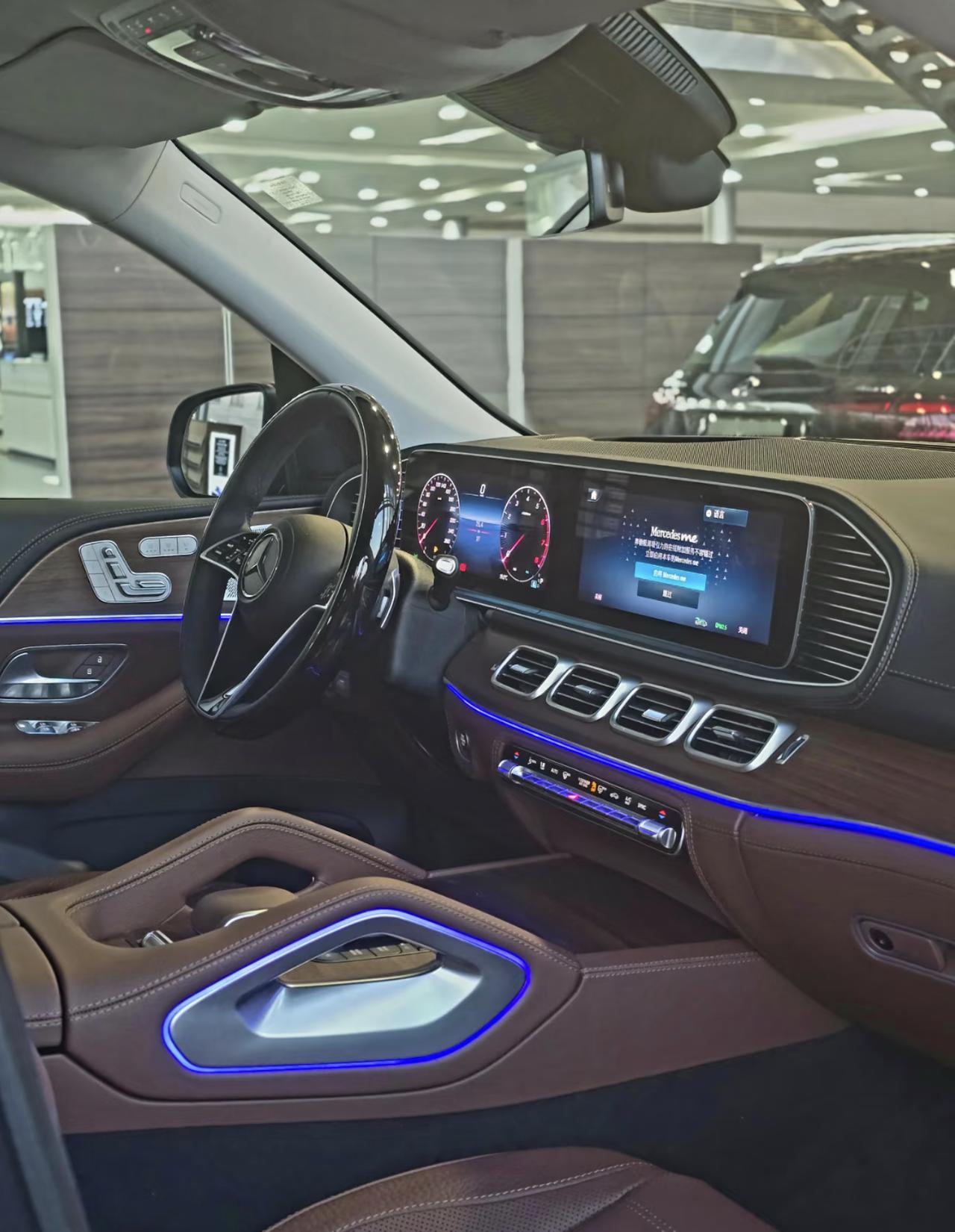 奔驰GLS450搭载一台3.0升直列六缸涡轮增压发动机,配备48伏轻混系统。这套动力组合在提升初段动力响应平顺性的同时,也为自动启停、空调压缩机等电气设备提供了独立能源。发动机最大输出功率达270千瓦,峰值扭矩为500牛·米,匹配9速自动变速箱。 底盘采用AIRMATIC空气悬挂系统,具备自适应减震功能,可根据驾驶模式调整离地间隙。在“舒适”模式下,悬挂能有效过滤路面颠簸;切换至“运动”模式时,车身自动降低以提升稳定性。四驱系统为标准配置,前后扭矩分配保持在固定比例。 车内配备双12.3英寸显示屏,分别承担仪表盘与娱乐系统功能。第三排座椅支持电动折叠,行李厢容积可在355升至2400升之间灵活调整。驾驶辅助系统包含主动刹车辅助、盲点监测等功能,在特定条件下可提供转向支持。 整车长度超过5.2米,轴距约3.1米,采用2+3+2座椅布局。前大灯采用Multibeam LED技术,通过单独控制的LED单元实现自适应远近光调节。这些配置共同构成了GLS450作为大型SUV的功能特性。