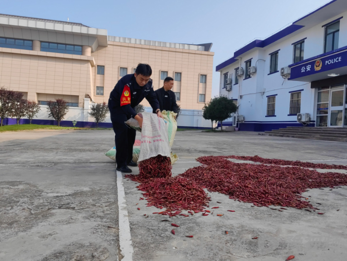 近期,禹州站派出所民警在日常线路巡逻走访中发现,辖区不少农户种植的辣椒进入收获季,连续的阴雨天气终于难得放晴,农户们却犯了难:自家晒场面积小,辣椒量大晒不开,要是错过好天气,辛苦种出的辣椒容易霉变,一年的收成可能受影响。了解到群众这一急难愁盼,派出所主动打破“警营重地”的刻板印象,迅速整理出院内闲置的平整区域,向周边农户敞开大门:“老乡,所里院坝宽敞,来这儿晒辣椒”。