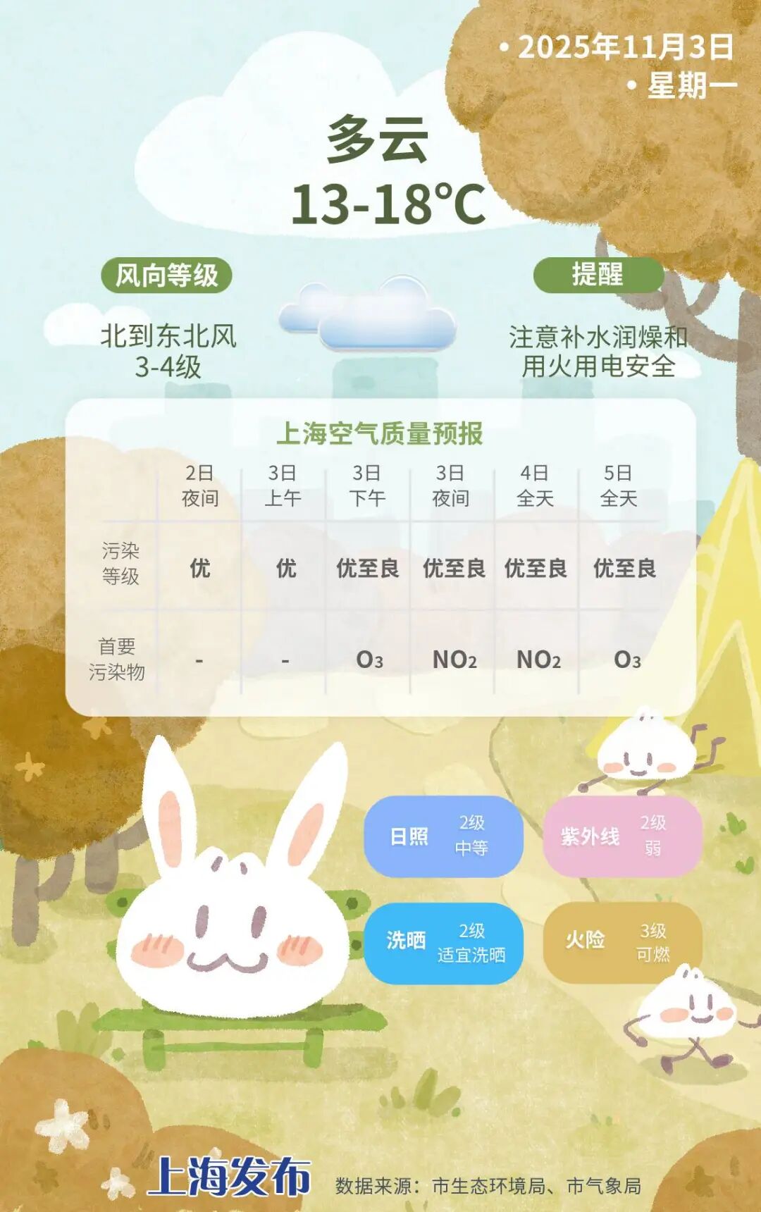 明天多云天气为主,冷空气叠加辐射降温作用,市区早间最低气温降至13度左右,郊区更低一些,白天最高气温18度上下。虽有阳光,但冷空气添加丝丝凉意,请及时关注气温变化,合理穿衣谨防感冒。上午起北到东北风3~4级,沿江沿海地区4~5级。相对湿度80%~45%,空气偏干燥,要注意补水润燥,和用火用电安全。