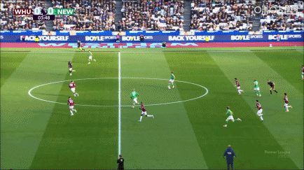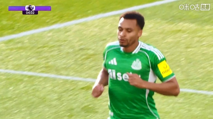 比赛第4分钟,墨菲抽射破门,纽卡1-0领先西汉姆