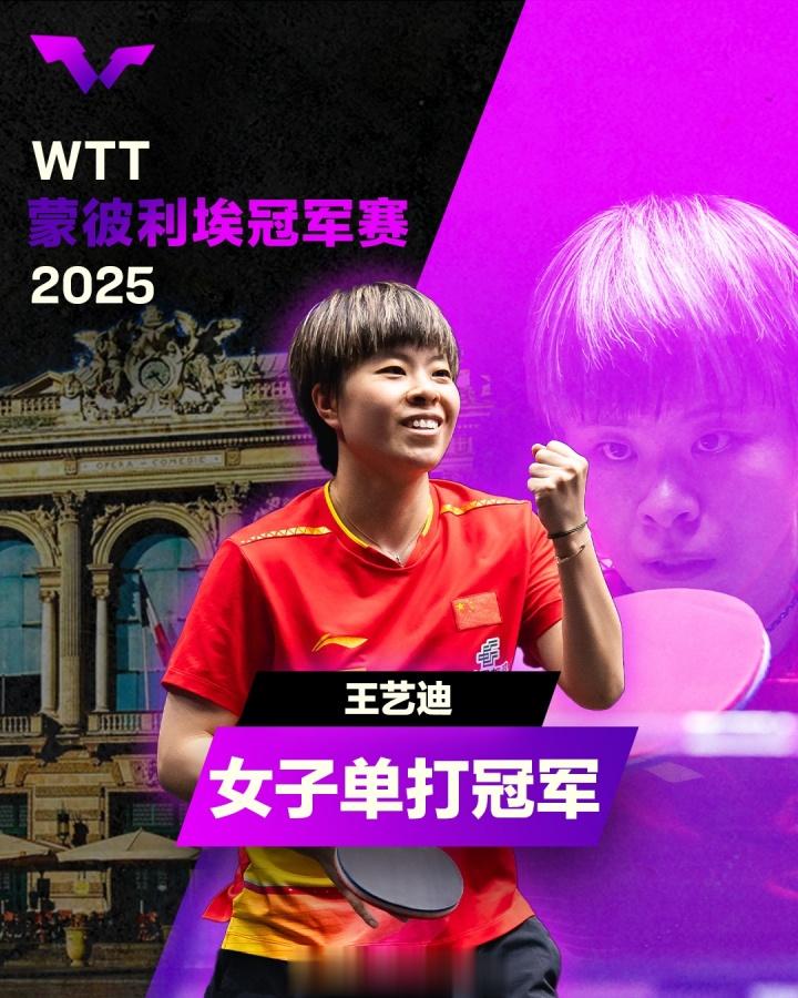 直播吧11月03日讯WTT冠军赛蒙彼利埃站女单决赛,王艺迪4比3战胜温特夺得冠军,比分:8-11,10-12,11-5,11-4,6-11,12-10,11-9。