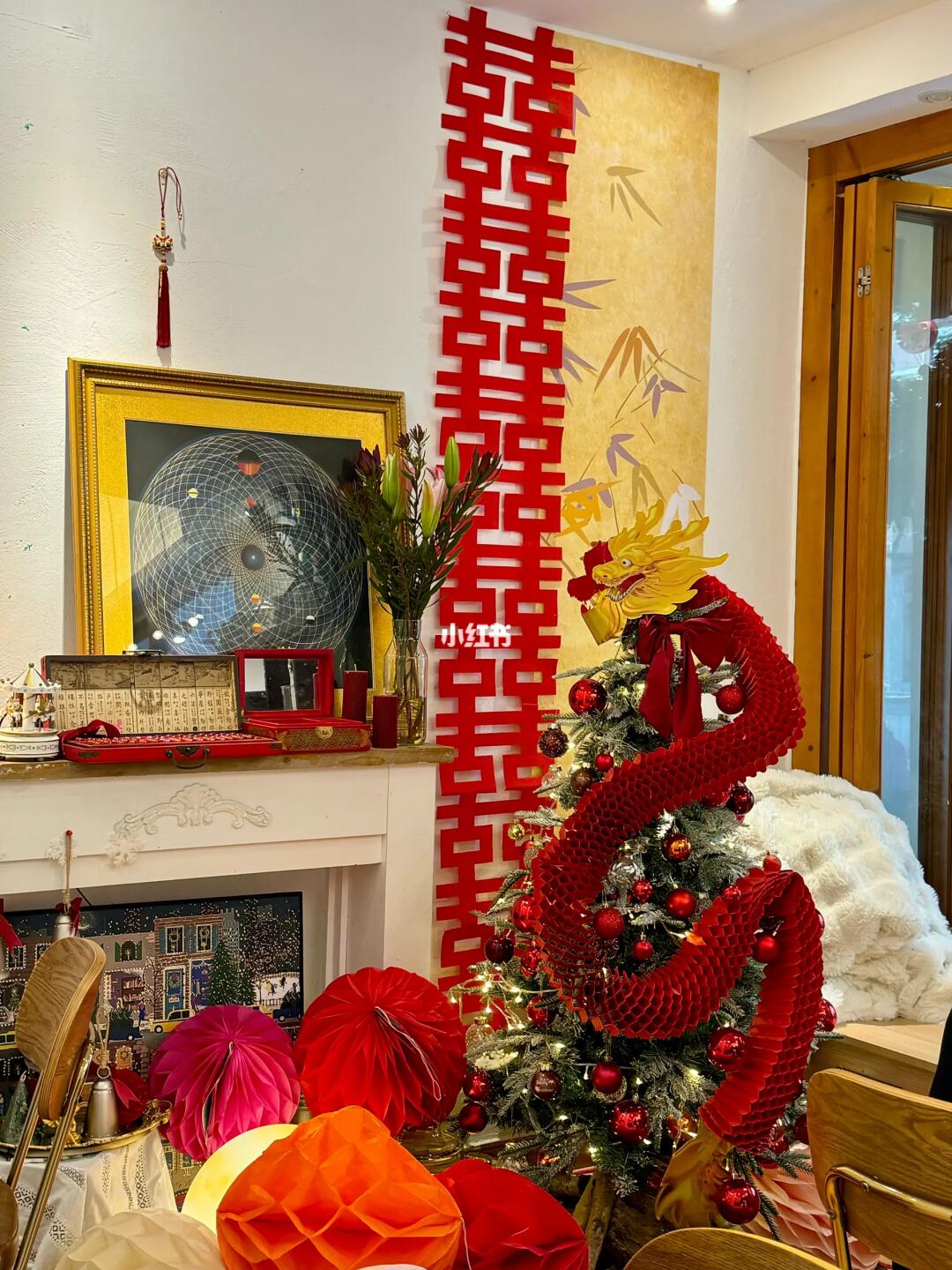 🐲门店设计:墙上挂满了各种有趣的春节装饰,你可以拍很多好看的照片!有很多灯笼🏮春联 龙元素.