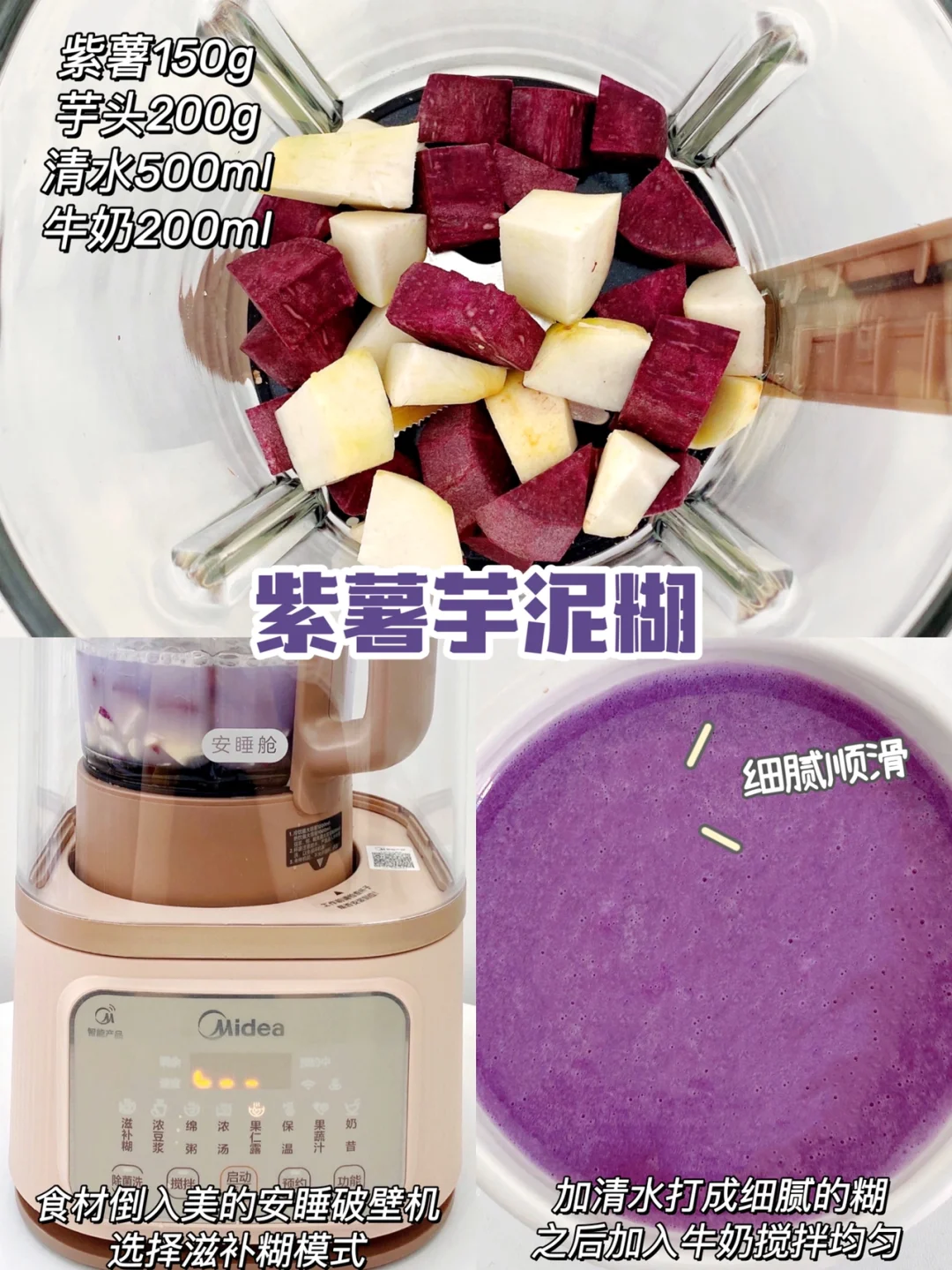 紫薯150g、芋头200g、清水500ml、牛奶200ml