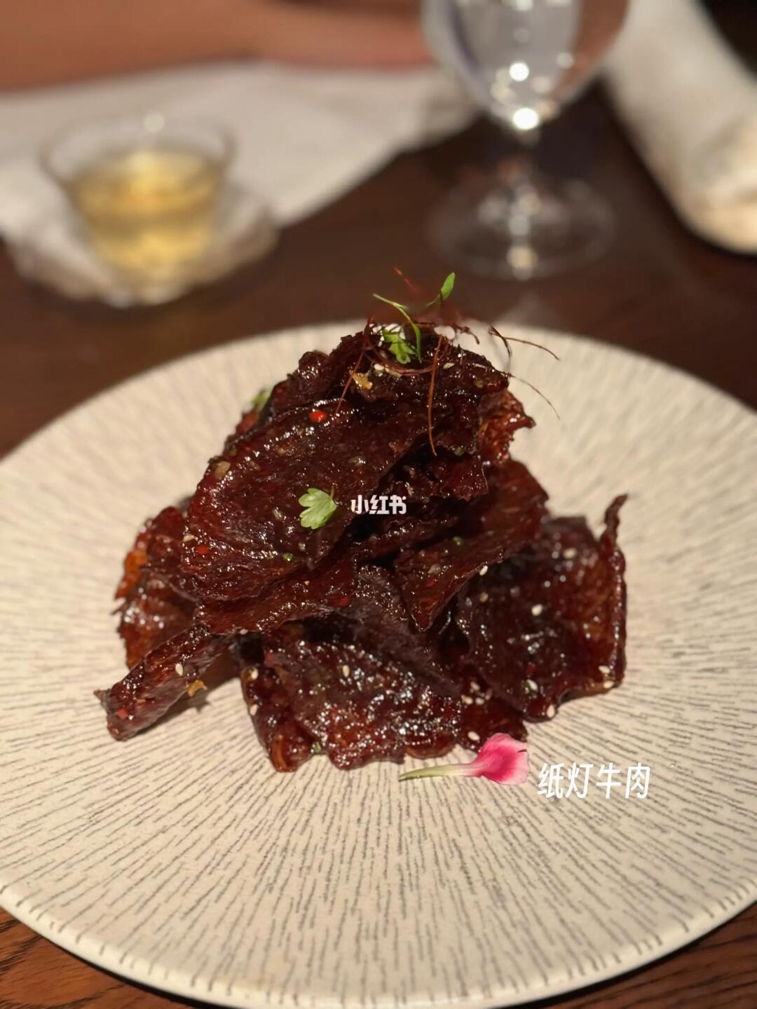 然后还有一个纸灯牛肉那只的牛肉很薄,然后有一点微甜的感觉还蛮好吃的
