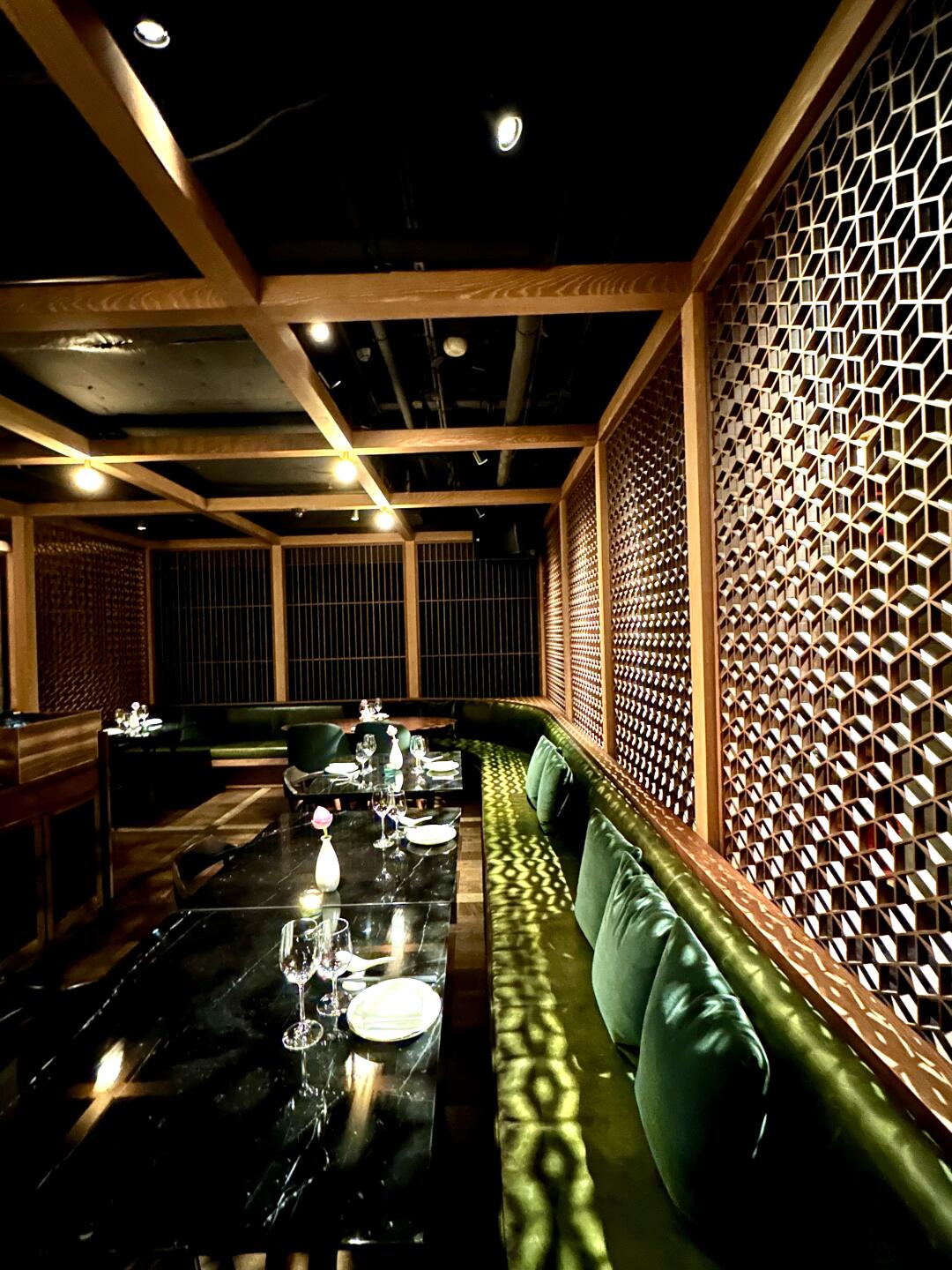粤餐厅有感觉到整个餐厅任何的设计感是比较有种新中式的感觉,那把东方元素跟这种奢华酒店融合的设计是蛮不错的,环境那些表安静光线了也是聚焦在桌面