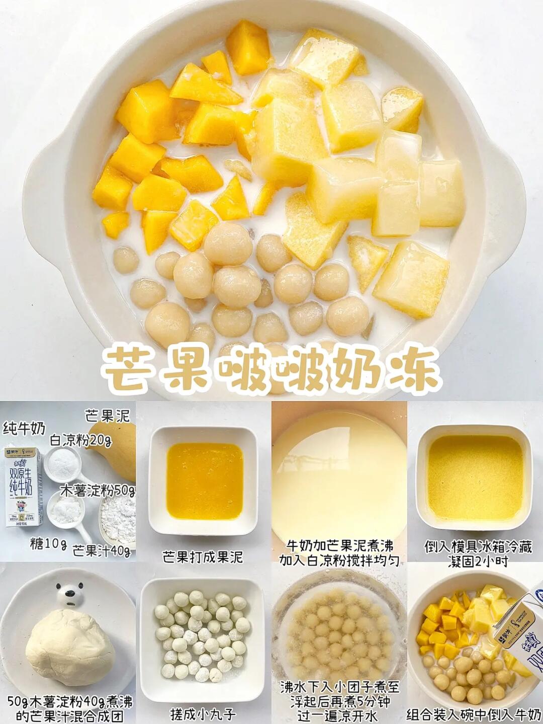 ▪️奶冻:牛奶200g、白凉粉20g、芒果泥