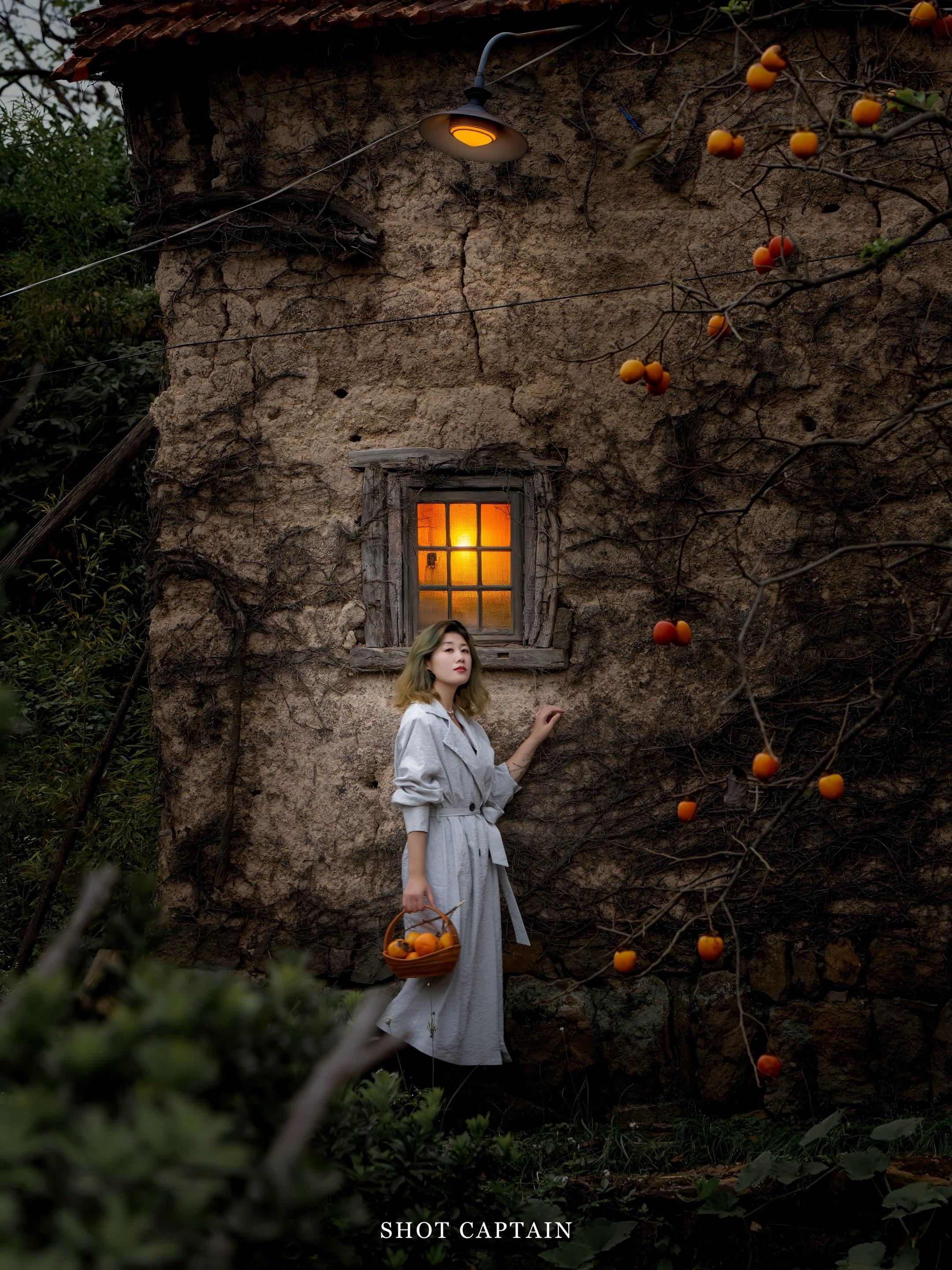 40+与秋光撞怀|照片开灯的那一瞬间!老窗框住岁月,路灯叠着窗灯,昏黄光晕漫过斑驳墙皮。檐下柿子红得热烈,清甜果香混着旧时光的温润,裹着40+的从容眉眼。不必追赶青涩,历经千帆的笃定,恰与这烟火小村适配——光抚轮廓,风摇柿叶,每一处细节都在说:成熟的美,藏在与人间烟火的温柔相拥里。