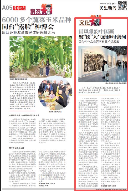 11月1日上午,国家艺术基金2025年度传播交流推广资助“承历史文脉咏时代赞歌——黄河文化主题中国画作品巡展”在河南省美术馆开幕。