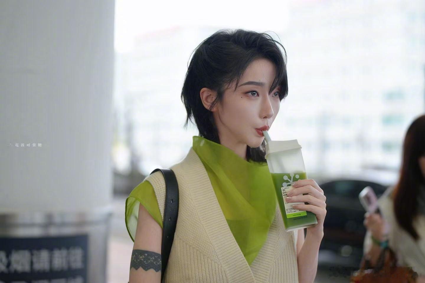刘恋的看秀造型姐感十足,简约廓形混搭精致细节,自在又高级。就连机场穿搭也是颇具态度,米白马甲混搭绿色上衣,随性又有范,这就是独属于刘恋的松弛感吧!