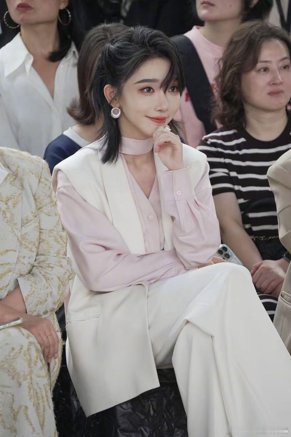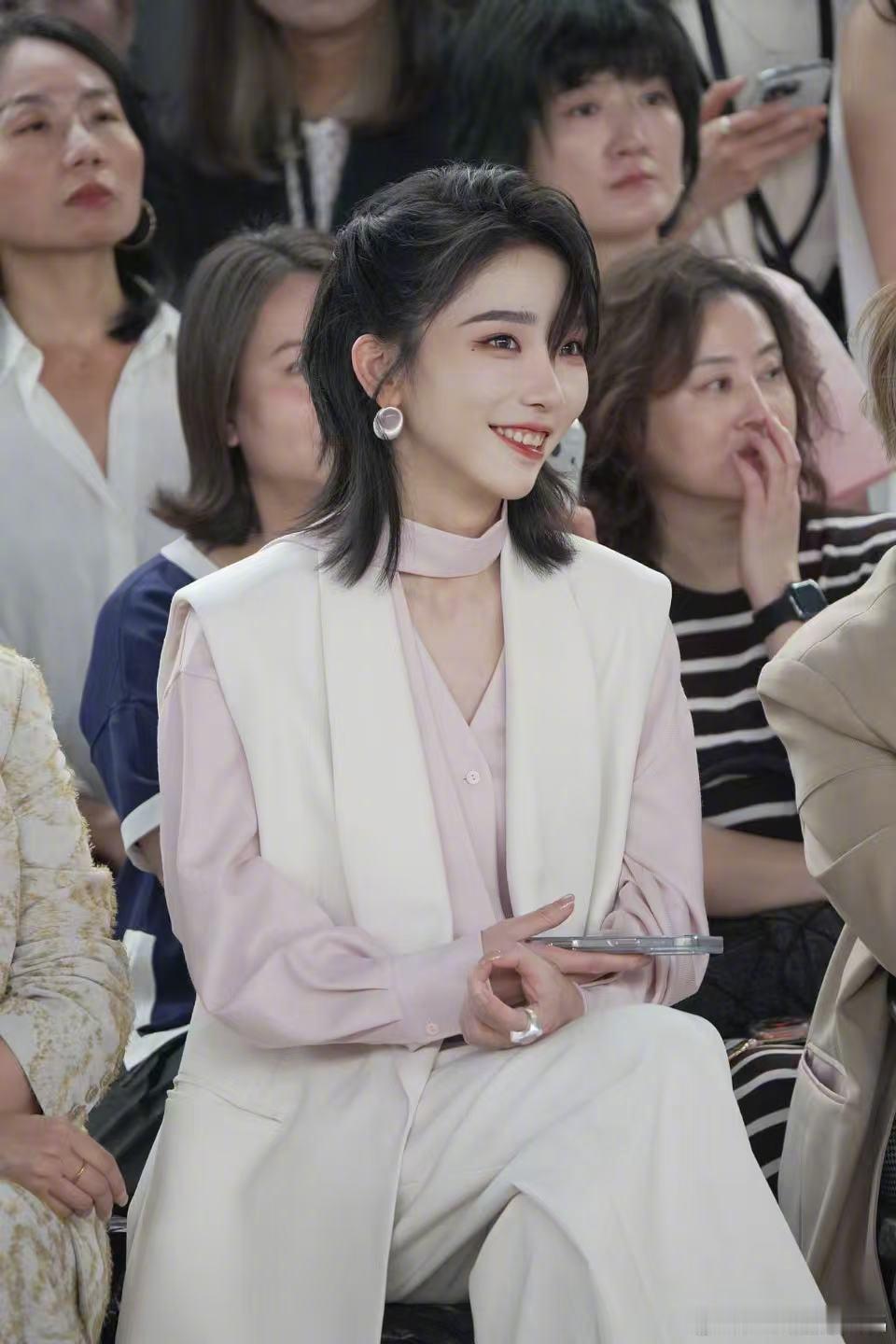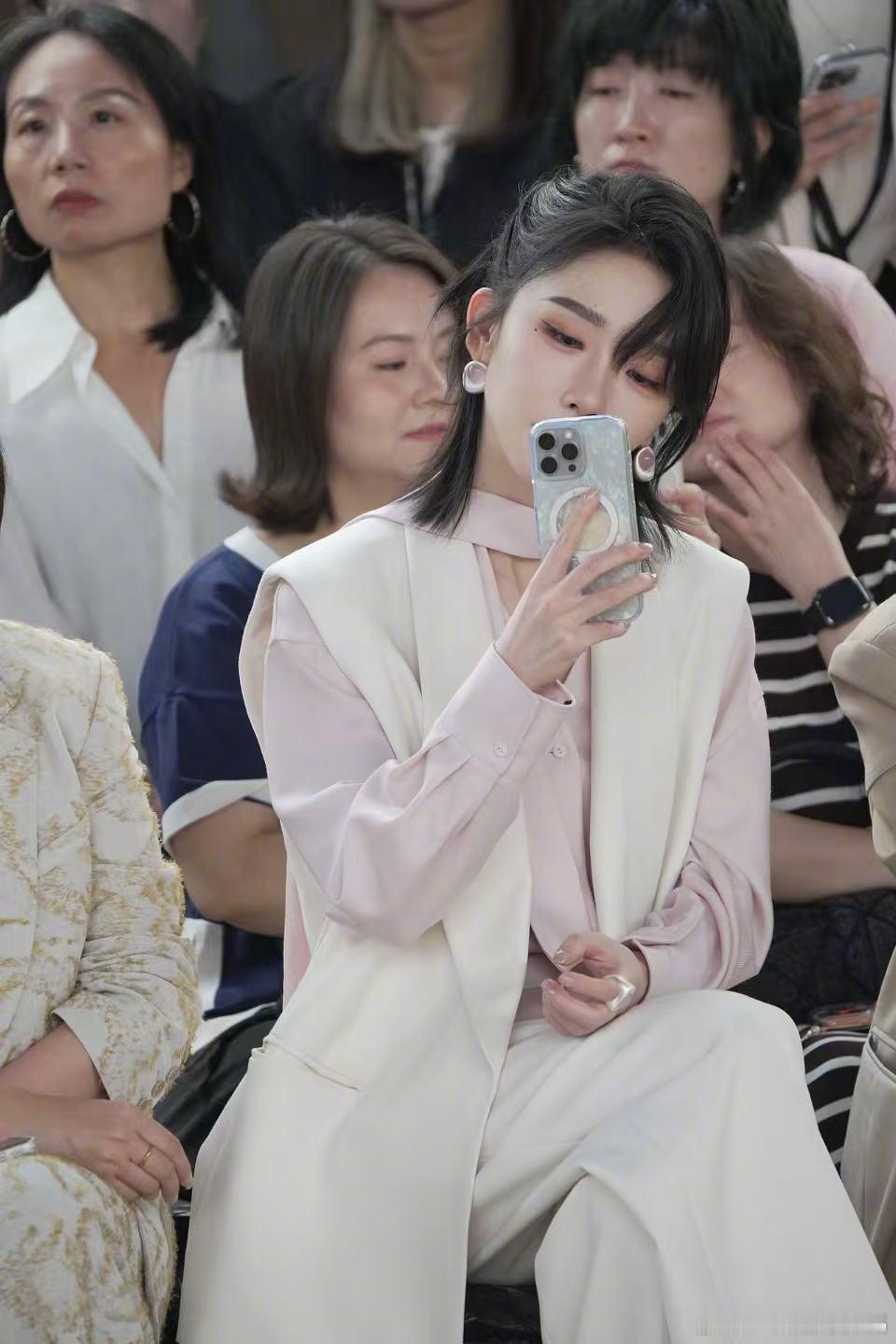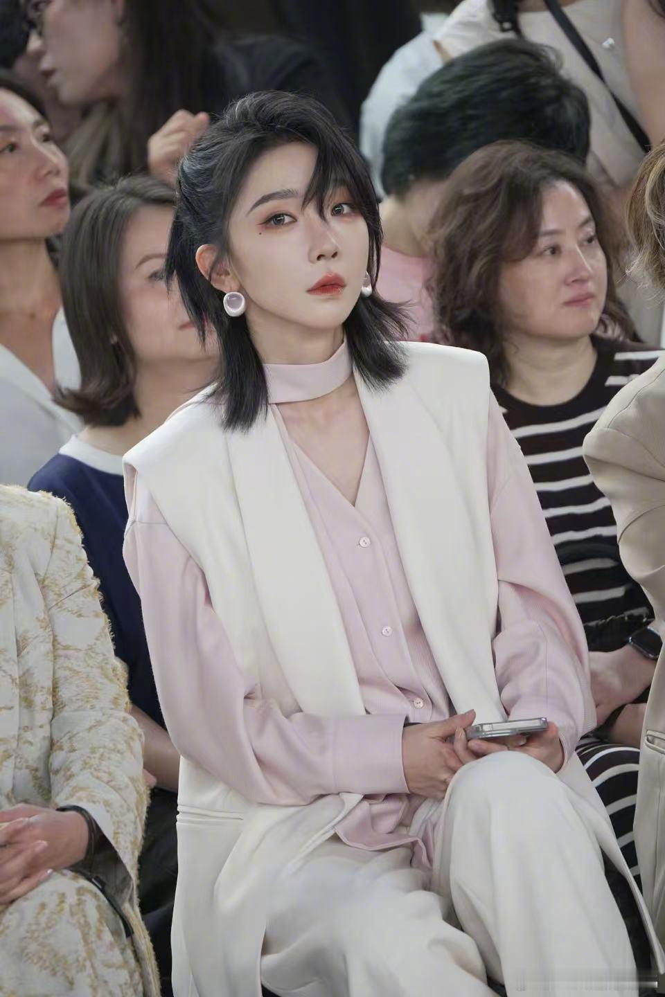 刘恋把松弛感玩明白了 刘恋的看秀造型姐感十足,简约廓形混搭精致细节,自在又高级。