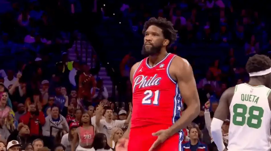 NBA官方表示,恩比德做出这个手势是在那场比赛首节还剩7:08秒时。