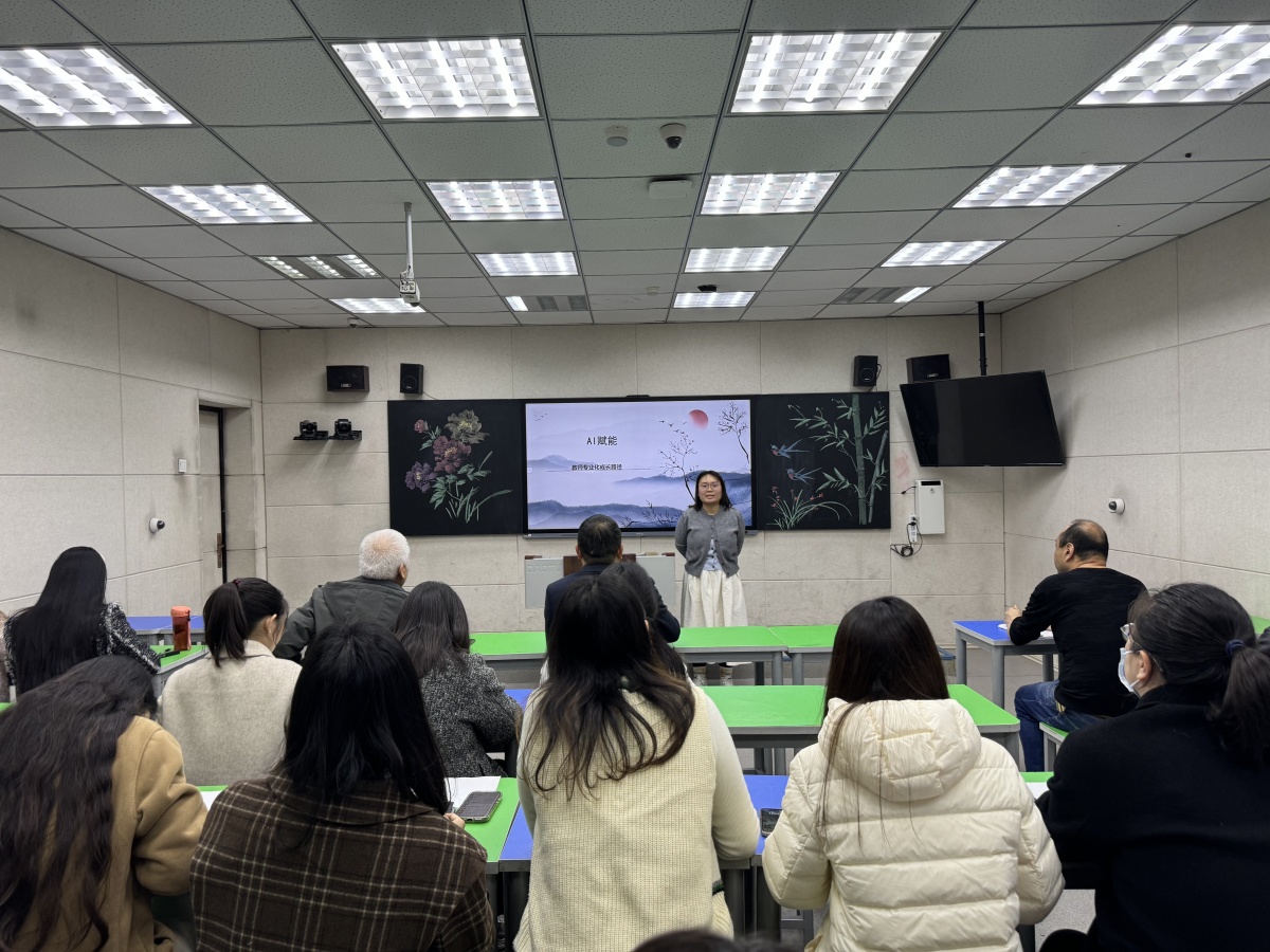 随后,在“人工智能赋能教育教学”专题讲座中,杨瑞老师围绕人工智能在备课、课堂互动、学情分析等环节的新的应用场景,结合具体案例深入浅出地讲解了智能教学工具的实操方法与创新思路。在“教师成长的专业路径”专题讲座中,教导副主任翟晶晶以“破浪寻光,同暖而行”为主题,结合电影《浪浪山小妖怪》,从教师自身教学经验,从教师的困境、如何突破困境、制定行动清单等方面,为教师们梳理了清晰的成长脉络。翟晶晶强调,教师专业成长需坚持初心、立足教学实践、扎根教育科研,通过持续学习、同伴互助、自我反思实现迭代升级。教师们认真聆听、积极互动。