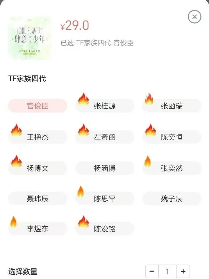 时代峰峻Fanclub高会更新“新增热销商品及热销规格的热度标识”,分三个等级:大火🔥🔥🔥、中火🔥🔥和小火🔥,可以看到大致销量差距,🔥越大说明卖的越多(还有没火的[笑cry])