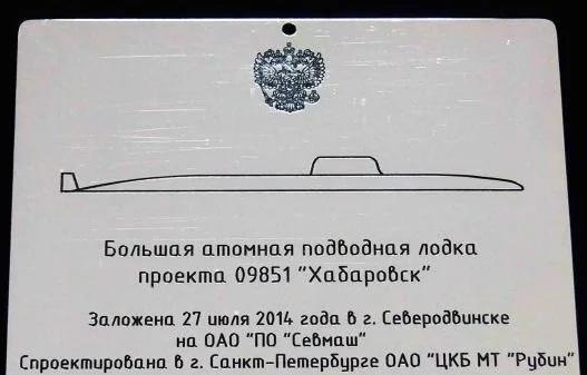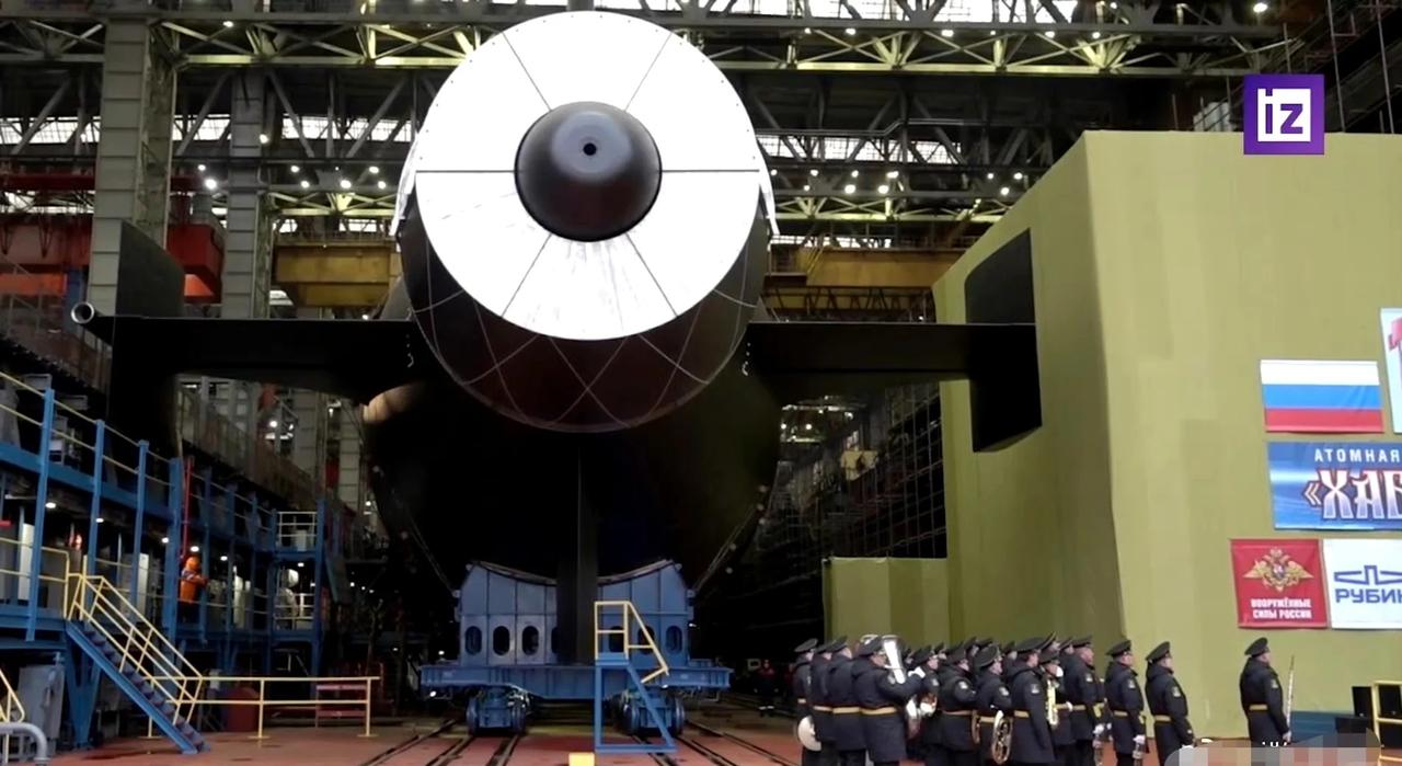 “哈巴罗夫斯克”号特种核潜艇下水 俄海军“哈巴罗夫斯克”号特种核潜艇昨天在北德文斯克举行下水仪式。此艇型号为09851,性能和用途可能与已服役的09852型“别尔哥罗德”号特种核潜艇类似,即携带一艘小型核潜艇,以及“波塞冬”核动力核弹头鱼雷。 俄罗斯海军