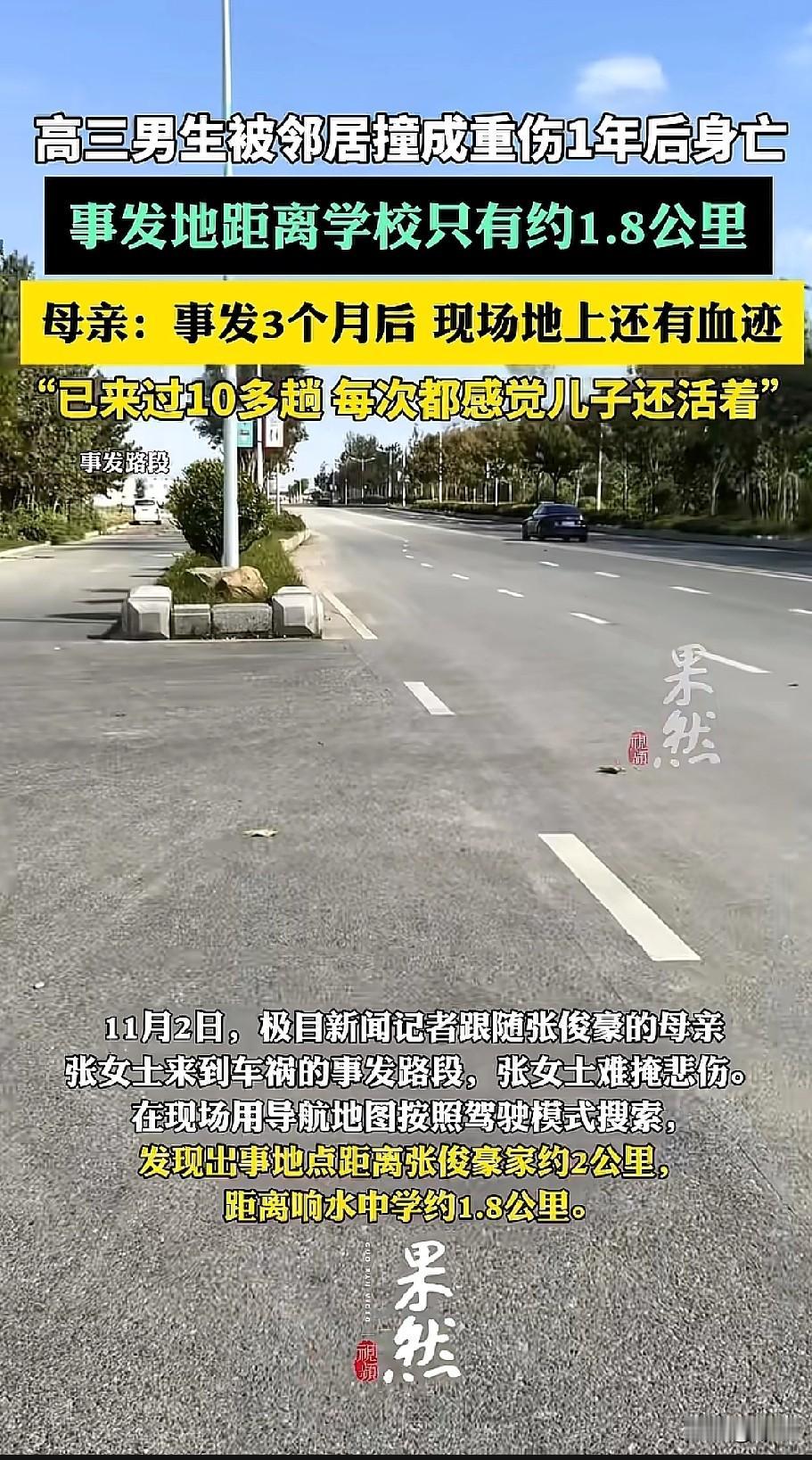 江苏盐城19岁高三男生张俊豪,2024年5月上学路上被邻居王某桂驾车蓄意撞击。两家有地界纠纷,王某桂怀恨在心,掉头尾随撞人后谎称交通事故。张俊豪脑部严重受损,昏迷14个月后离世,年仅20岁。期间肇事者家属没探望没道歉,11月3日案件以故意杀人罪开庭。 一条年轻生命没了,高考梦碎家庭破碎。邻里间这点琐事,何至于下此狠手。冲动是魔鬼,报复解决不了问题,只会害人害己。法律不会轻饶作恶者,也该提醒大家,遇事多包容多沟通,别让小事酿成无法挽回的悲剧。