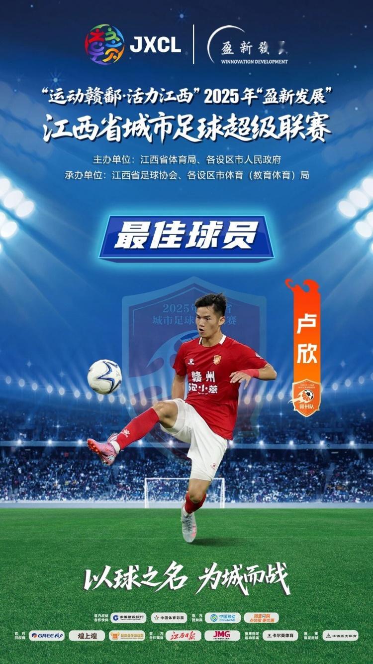 今日“赣超”官方公布了本次联赛各奖项,其中最佳球员和最佳射手由赣州队球员卢欣获得,他在本届赛事共打进12球。各奖项具体如下: