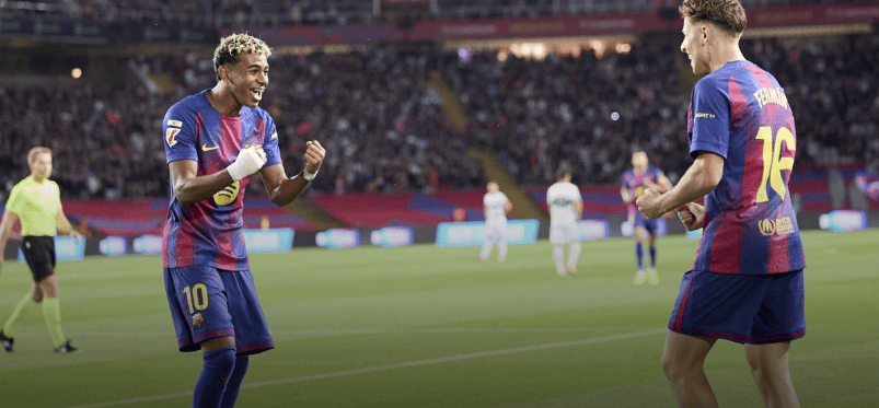 虎扑11月03日讯2025-26赛季西甲第11轮,巴塞罗那凭借亚马尔,费兰-托雷斯和拉什福德的进球,3-1击败了埃尔切。与上一场国家德比相比,弗里克在首发中做出了两处调整:阿劳霍替代了库巴西,卡萨多顶替了受伤的佩德里。