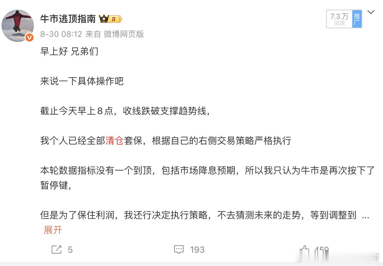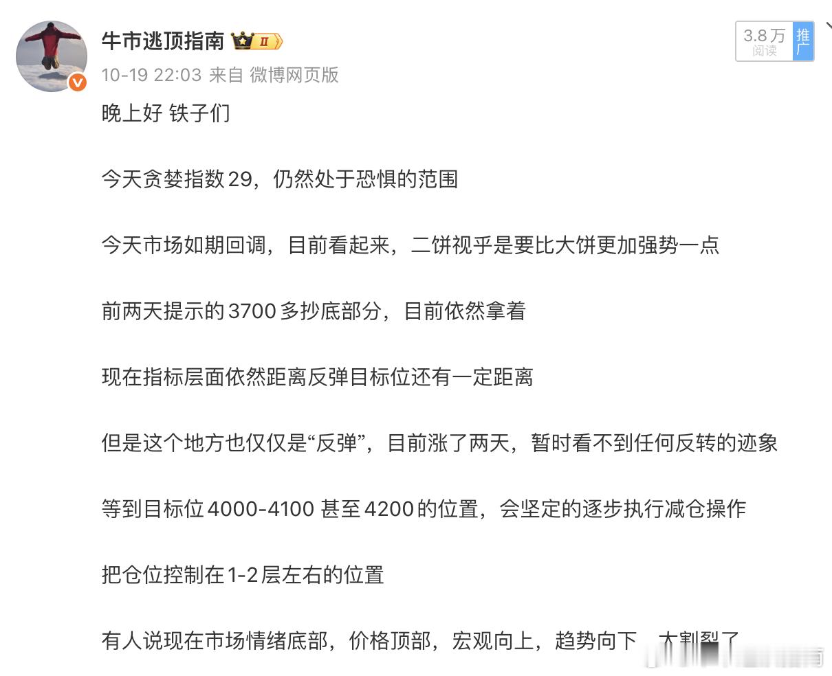 3、永远避免在恐慌下跌时梭哈卖出,也不要在狂热上涨时梭哈买入。分批操作,保持节奏,是对自己负责的表现。