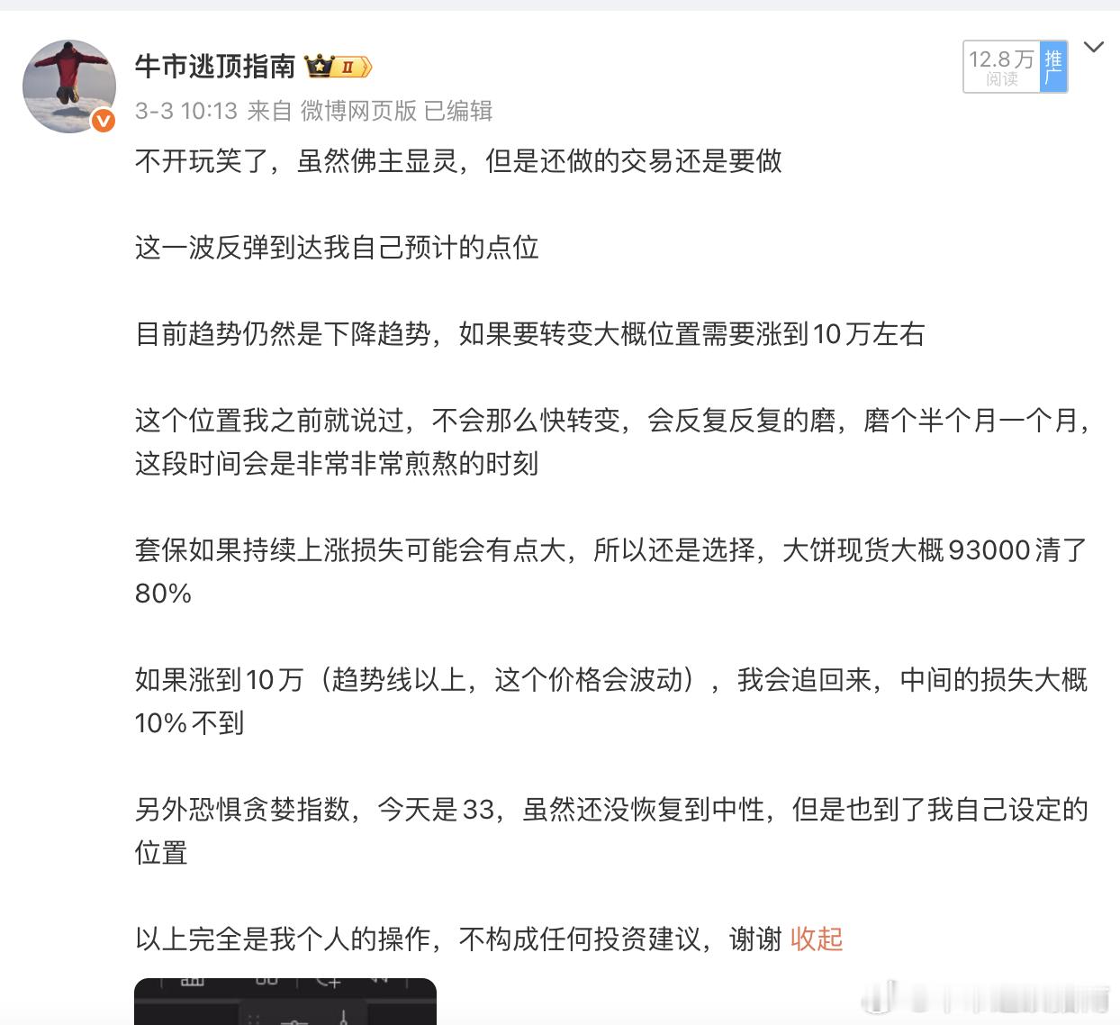1)3 月 3 日:大盘下跌后反弹到 9.3 万附近,我选择减仓并做套保。随后市场出现大跌调整,一路回到 7 万多。
