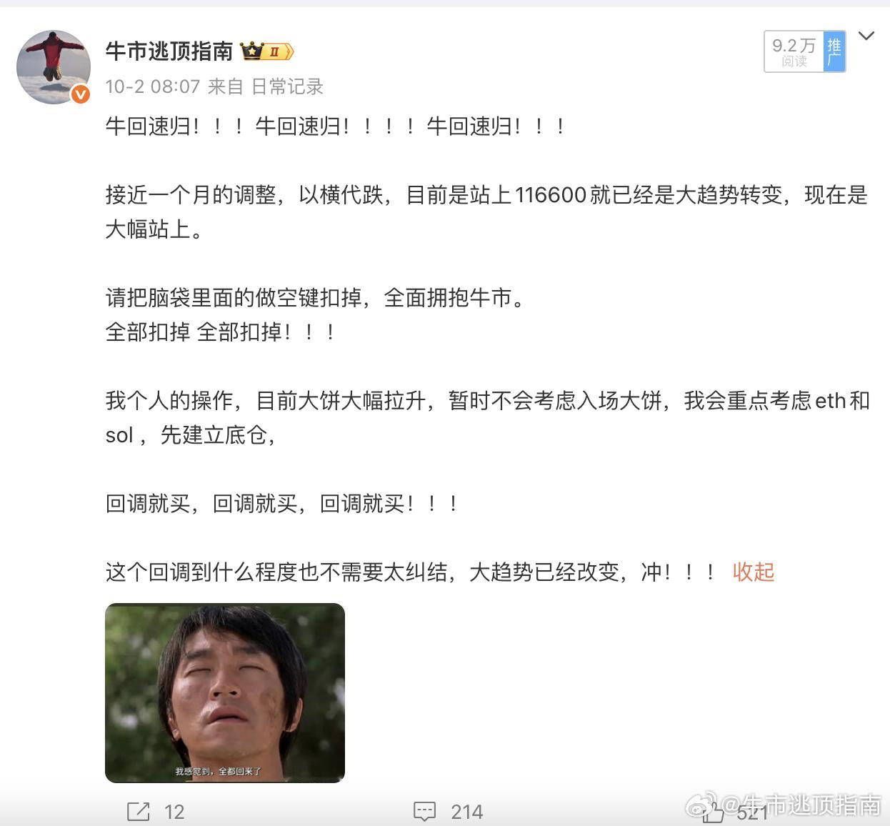 4)“大盘骗炮”(假突破):11.4 万附近向上突破,短暂改变了趋势。我提示回调时再介入。二饼(ETH)我从 4100 一路分批加仓,到 10/11 大跌后,持仓均价在 3700 多。