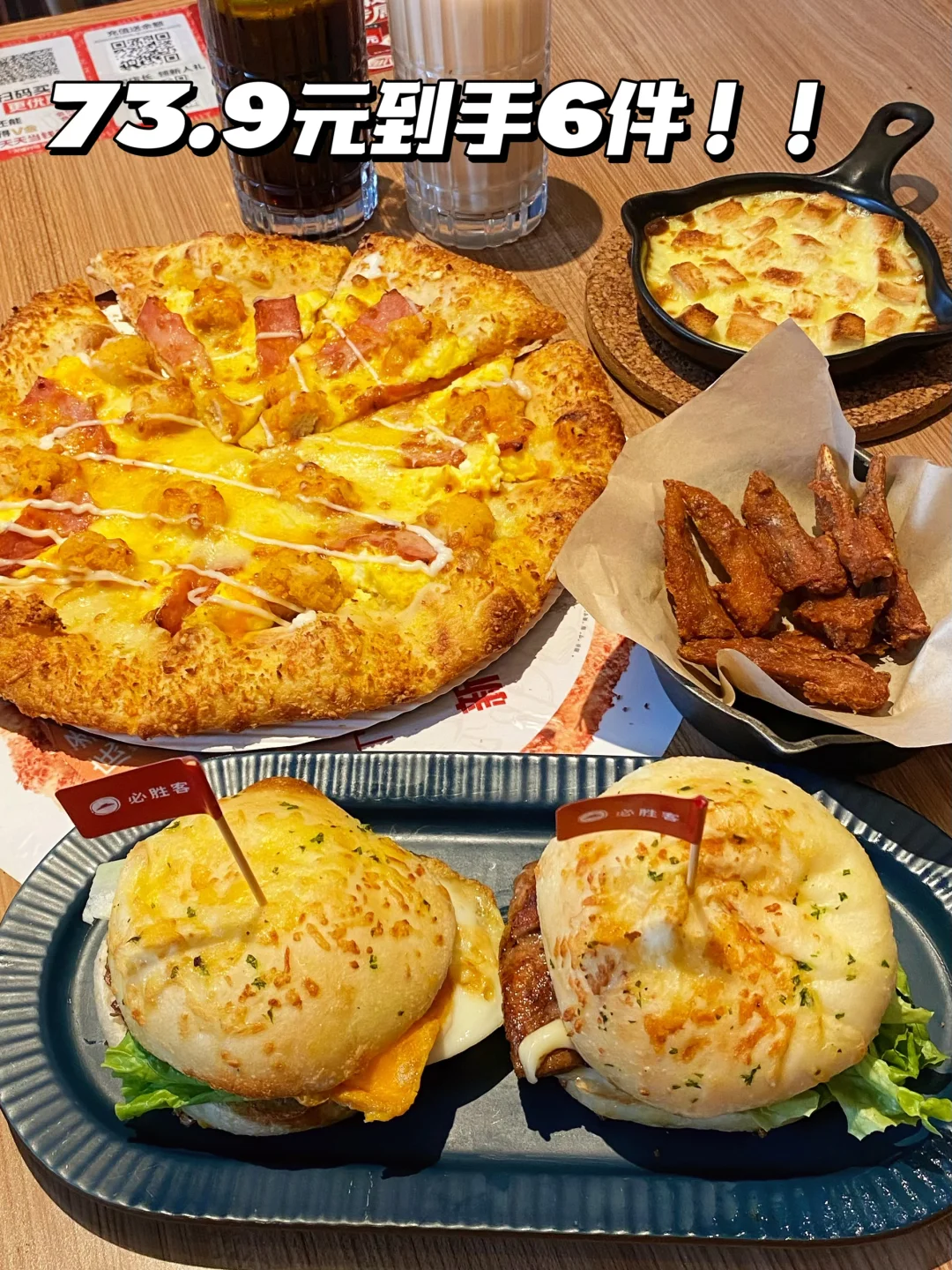 正好赶上他们周年庆,选择了这个79元6件的披萨小食饮品的套餐[派对R]