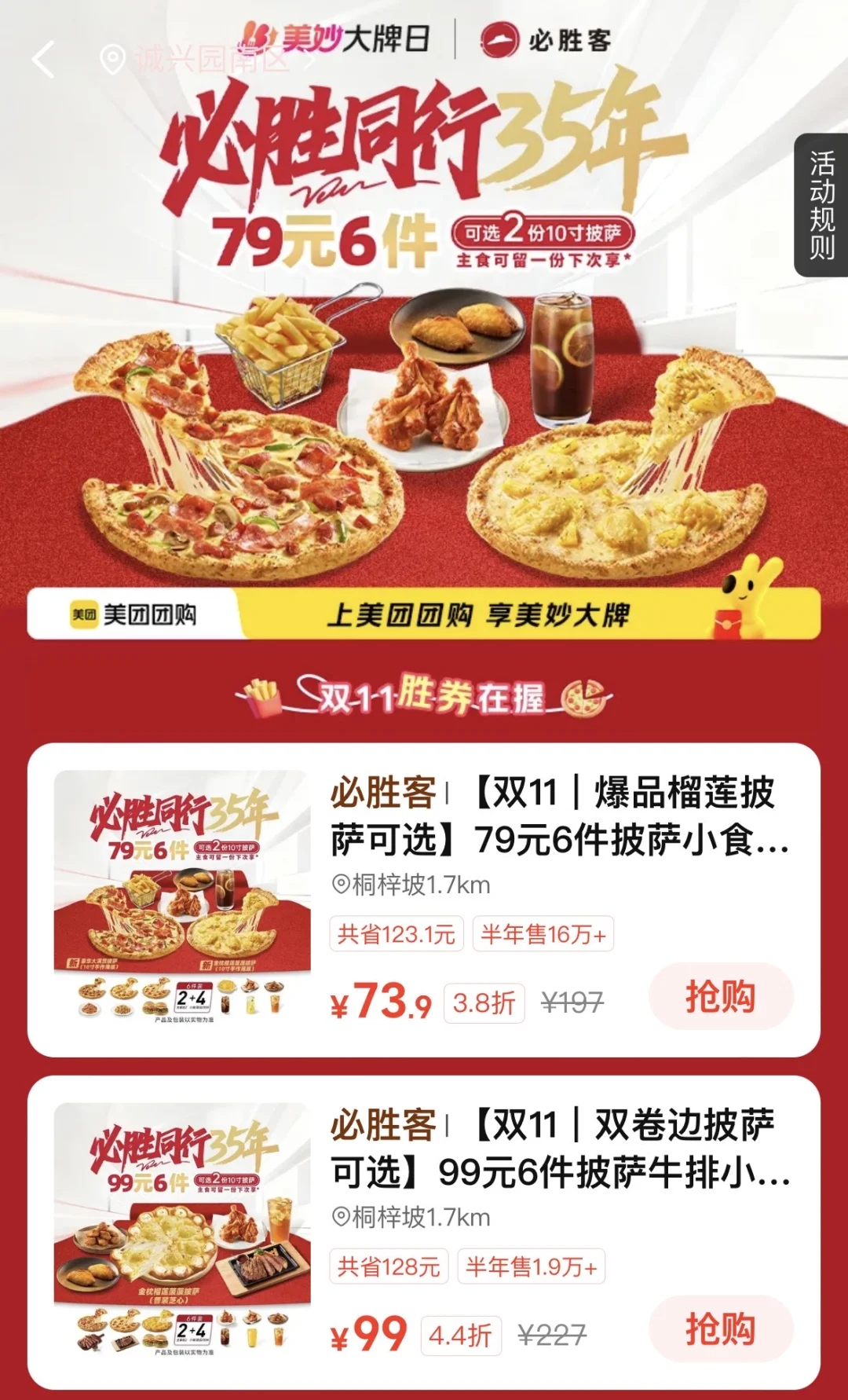 美团美团美食福利官美妙大牌日必胜客必胜客35周年79元6件套
