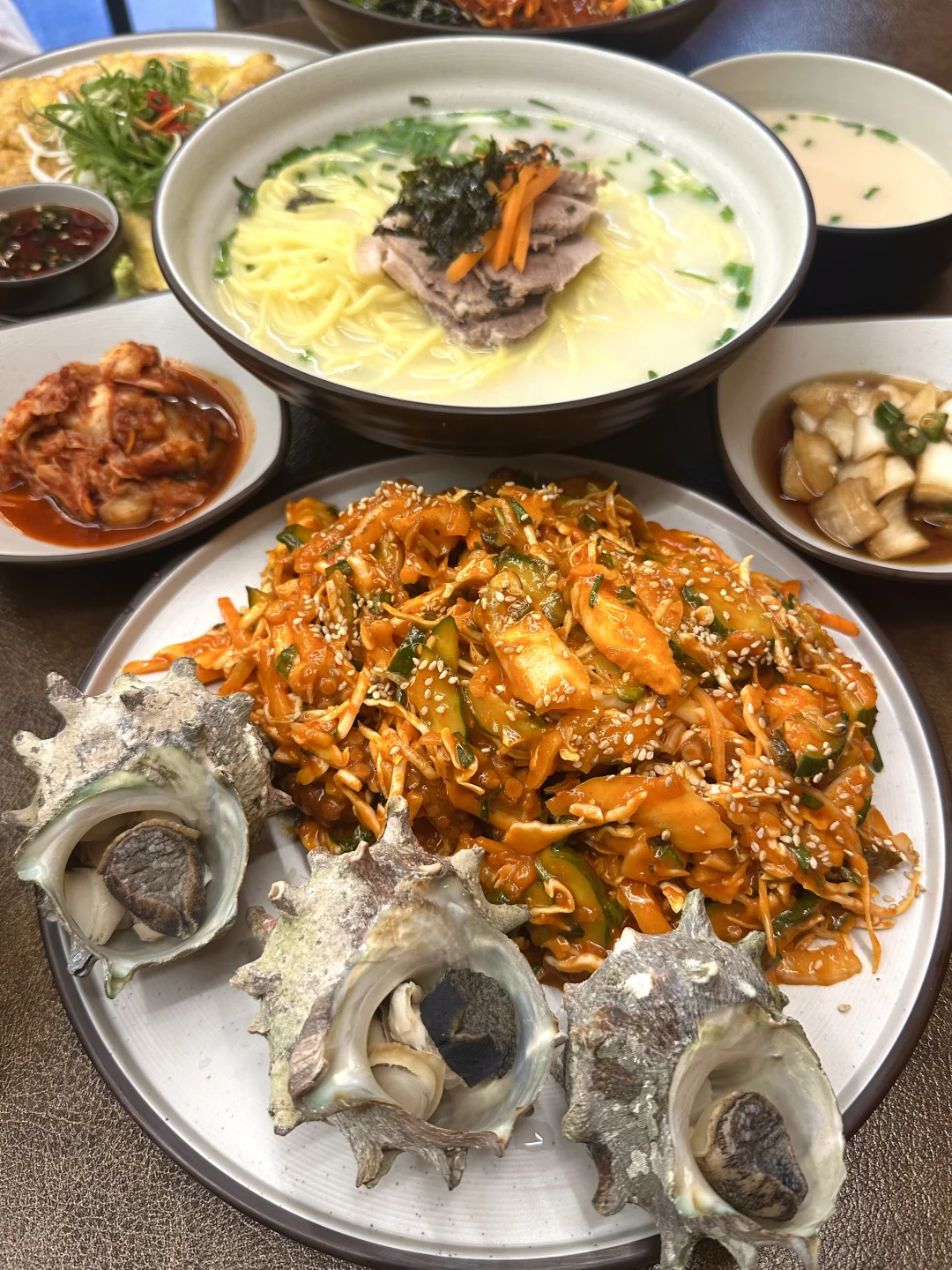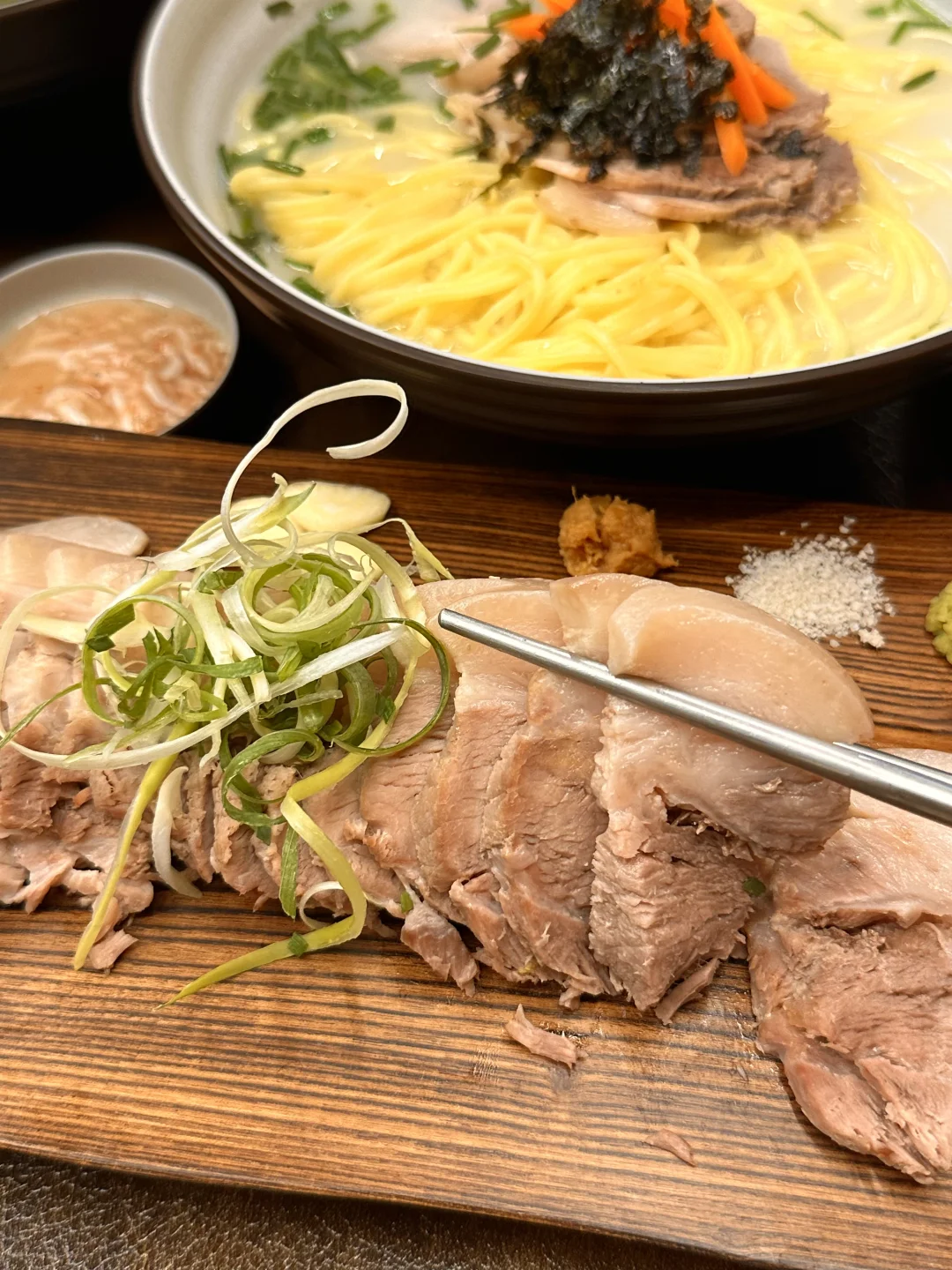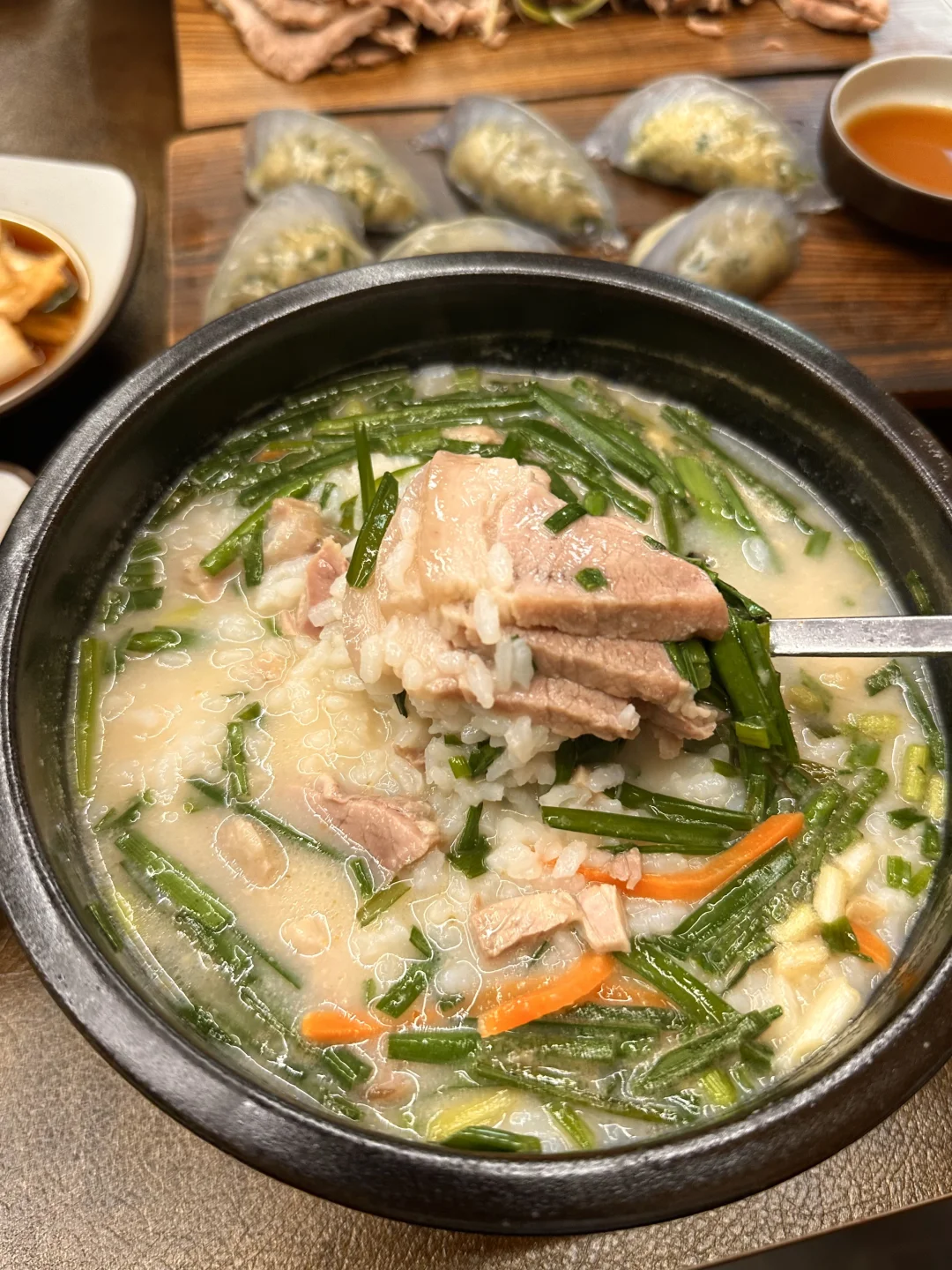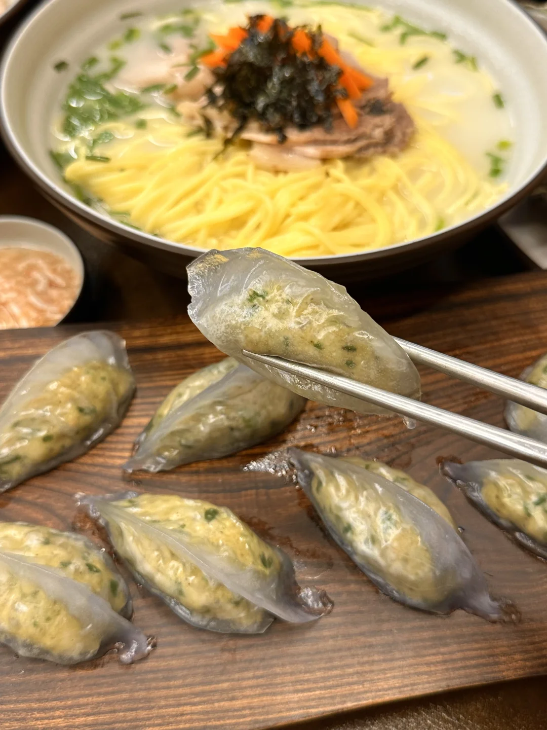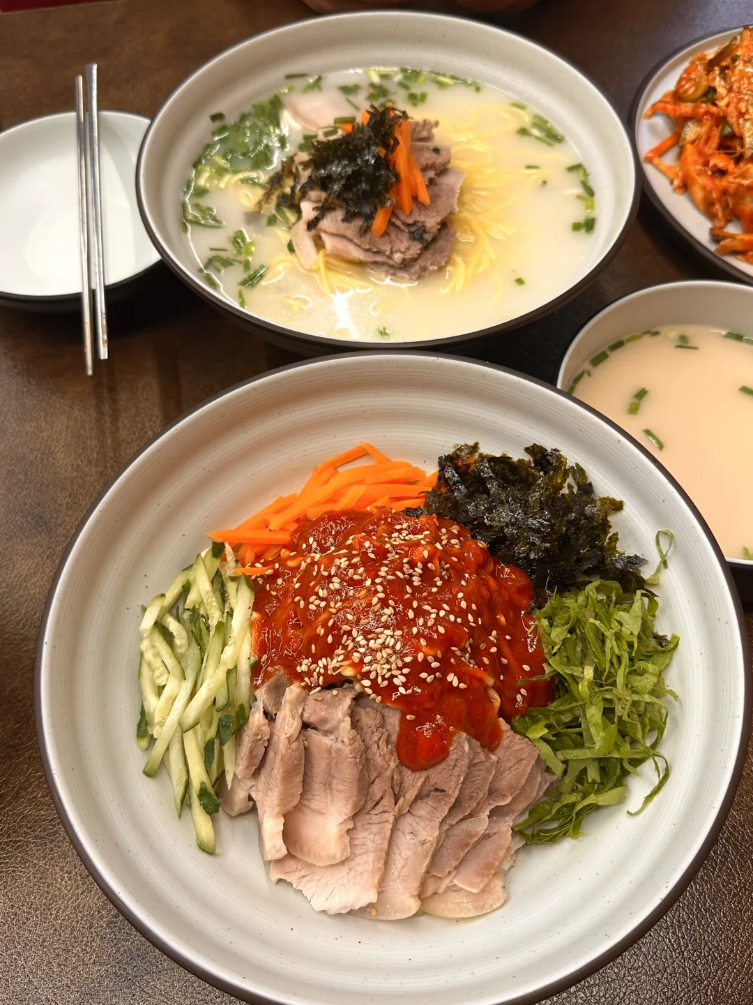 想吃清淡的来这家好吃的!!汤饭真的一绝,太对我的胃口了,非常养胃。面和汤饭的汤头是一样的,看个人爱吃面还是饭。 想要有味道一点可以要拌面,拌面🍜就是韩国辣酱的味道,就是正宗的韩国拉面。 他家猪肉真的很大片,一块真的满足🤣这个饺子🥟是真的好吃,皮薄薄的馅有很多!价格都很便宜,一碗差不多50左右,真的划算 🏠 衙朗面条