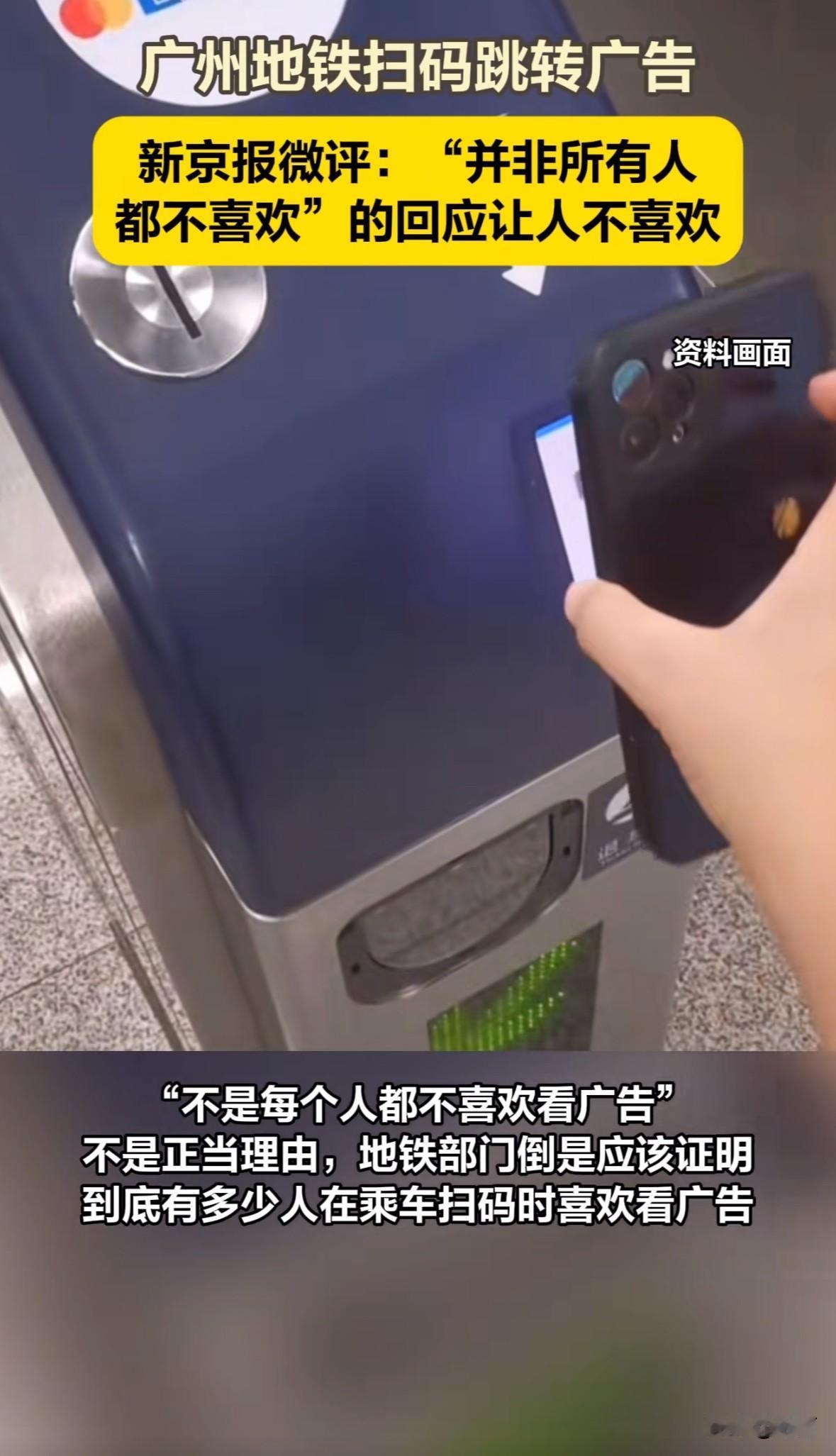10月30日起,不少广州网友吐槽地铁APP乘车码有“摇一摇”广告,手机翻转扫码就跳转第三方应用,关闭按钮还隐蔽,早高峰耽误过闸。客服回应“并非所有人都不喜欢广告”,让有困扰的用户单独反馈。市监局说这类广告涉嫌违规,不合《广告法》一键关闭要求,可能罚5000元到3万元。10月30日当天地铁就下线了该广告,11月3日回应会优化广告交互形式。公共服务APP核心是方便大家,广告不能干扰基础功能。赚钱也得守规矩,不能让乘客为广告买单,重视用户体验才是长久之道。