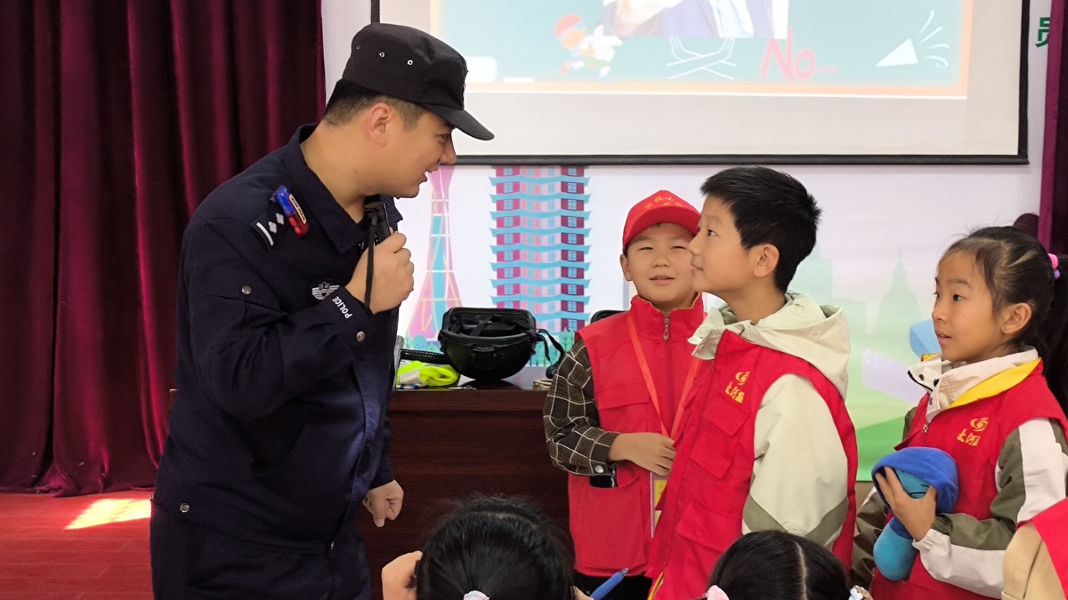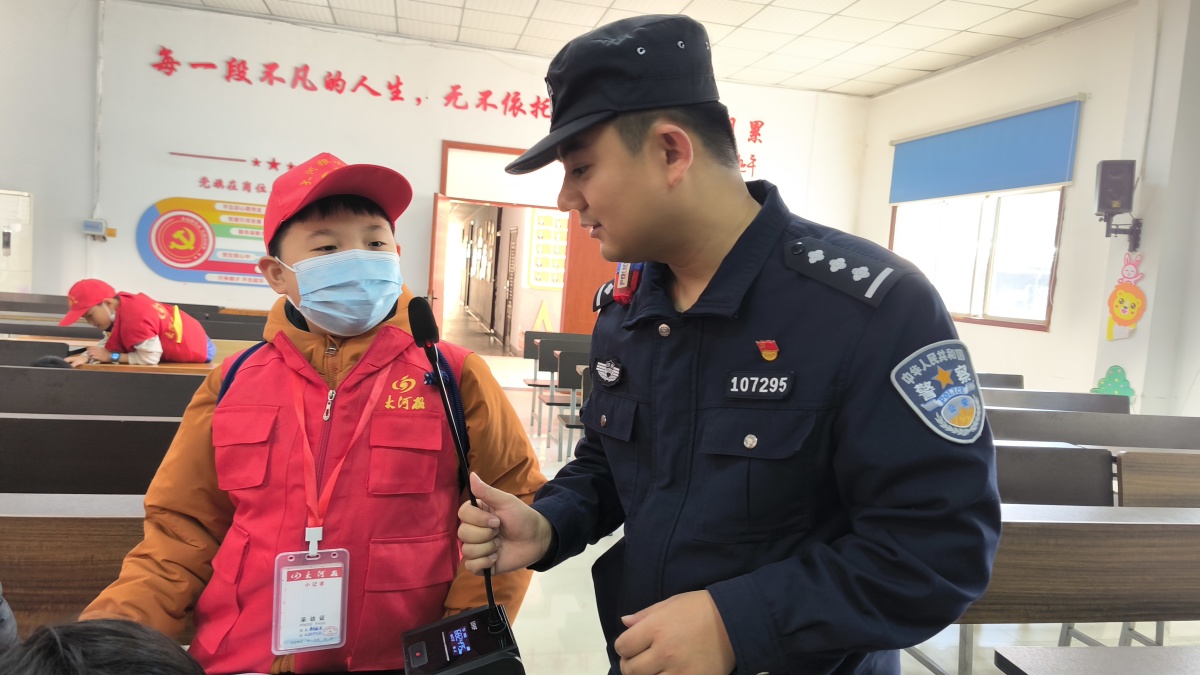 活动伊始,来自郑州市公安局特警支队一大队的特警队员孙冰雨以“拒绝校园欺凌,守护成长阳光”为主题,为小记者们带来一堂生动的安全教育课。他结合真实案例,用通俗易懂的语言剖析了校园欺凌的常见形式,并清晰阐释了“识别欺凌、勇敢说不、及时求助”三个关键步骤。“如果看到同学被欺负,不要盲目冲上前,要记住欺凌者的体貌特征,第一时间告诉老师和家长,也可拨打110报警。”宋少博的讲解内容详实,小记者们听得聚精会神,不时低头记录“防欺凌秘籍”,并踊跃举手提问,现场互动积极热烈。