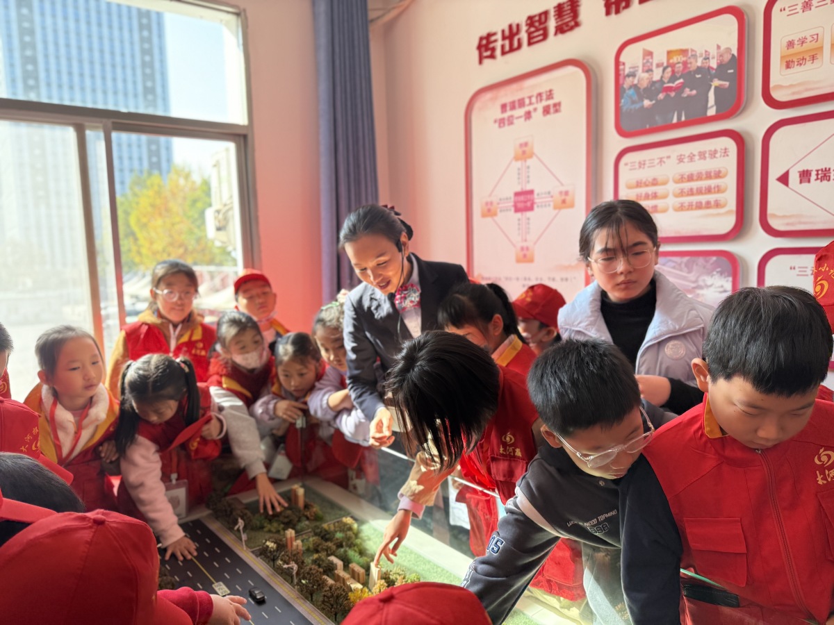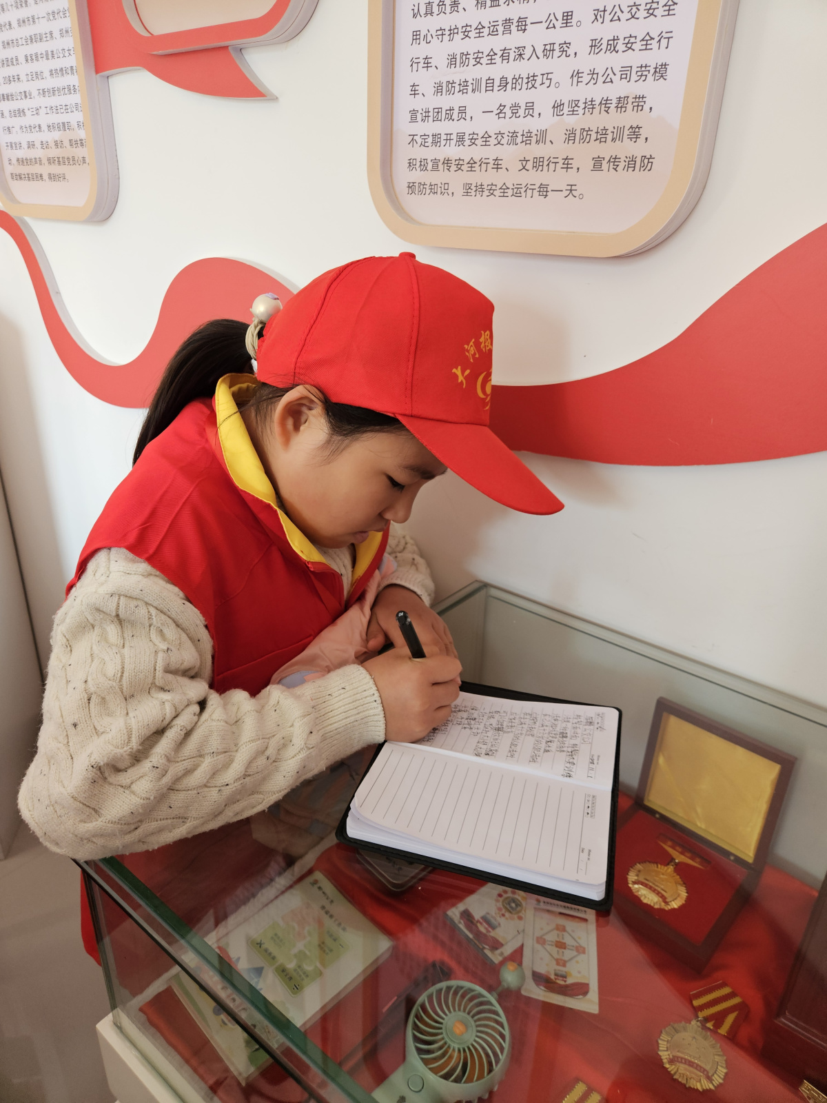 随后,小记者们走进郑州公交第一运营公司曹瑞娟工作室参观学习。公交工作人员虎老师为大家讲述了郑州公交的发展历程,展现了新时代公共交通的创新与进步。在荣誉展示墙前,一张张党员司机帮扶乘客、应急救援的照片,一个个“文明服务示范线路”的奖牌,令小记者们直观感受到党建引领下公交人的责任与担当。“原来每一趟安全准点的公交车背后,都有无数叔叔阿姨的辛勤付出。”一位小记者在采访本上认真写下自己的感悟。