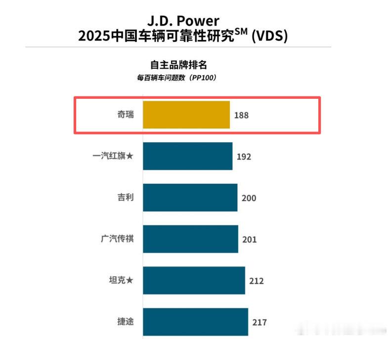 总的来看,现在奇瑞全球用户超 1800 万,关键品质还硬,拿了 J.D. Power 五项第一,成了行业独一份的 “五冠王”。