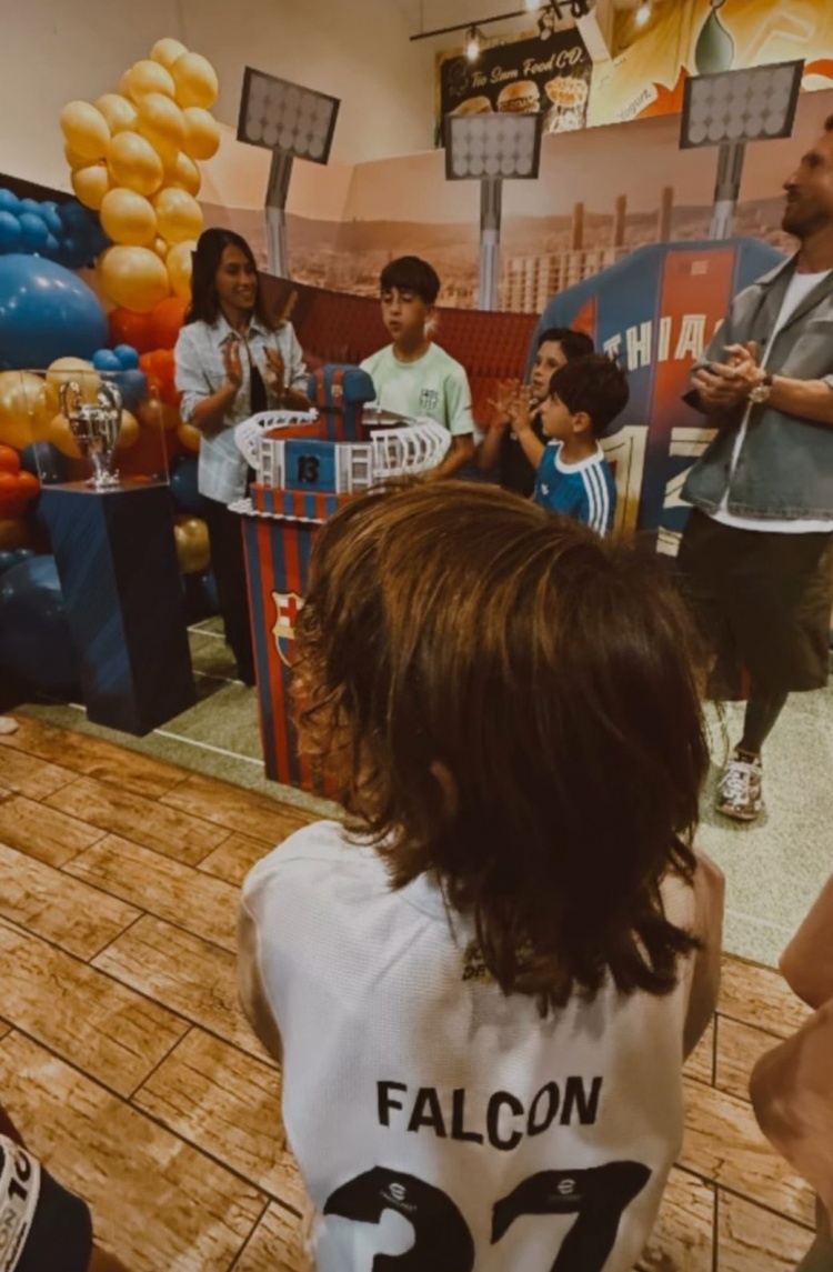 从网上流传的照片来看,梅西一家举办了巴萨主题派对,为蒂亚戈庆祝13岁生日。