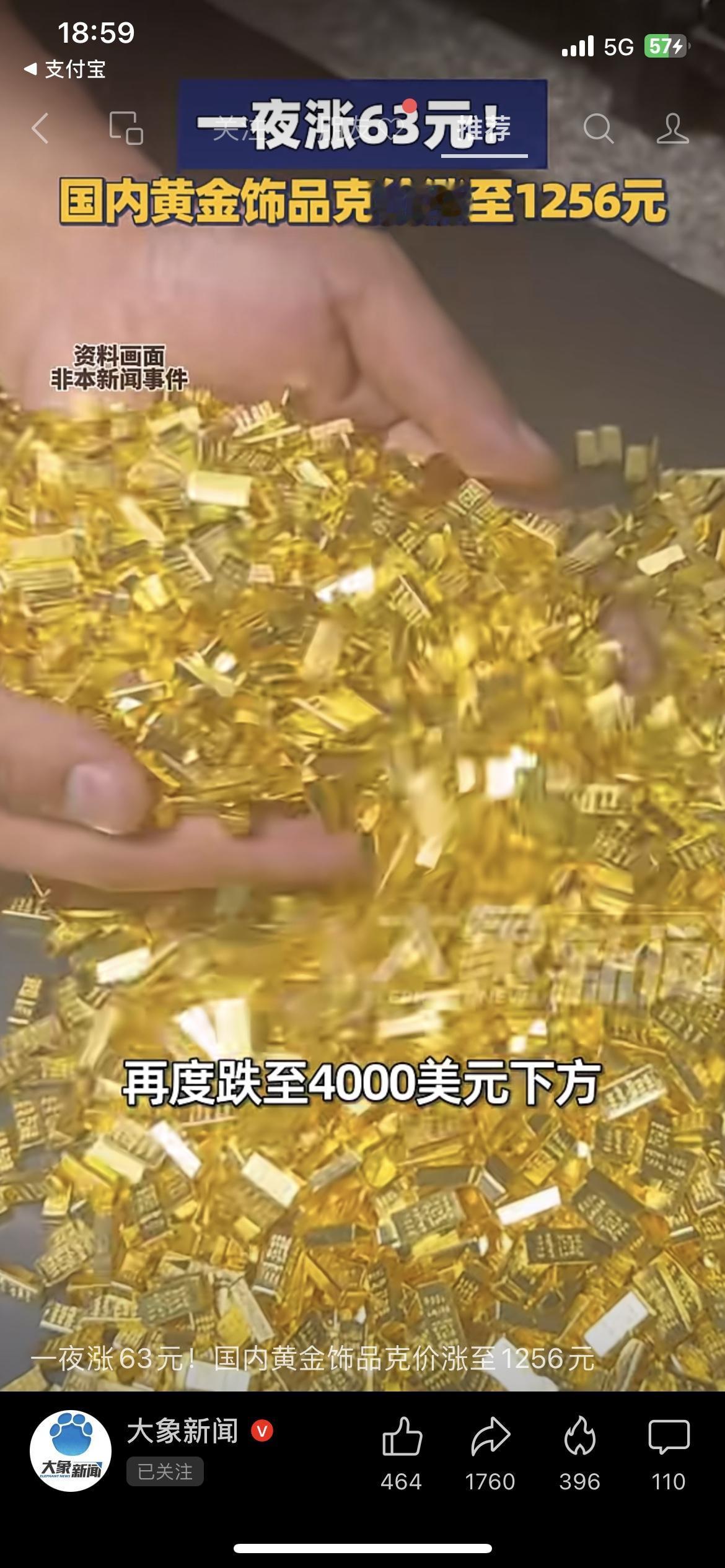 黄金一夜暴涨63元! 炸了!金饰1克涨63,现在买贵700 内容:家人们刚刷到的!黄金饰品克价一夜干到1256块,直接涨了63块!就拿10克的金镯子说,昨天买和今天买,差出小700块!这涨价速度比坐火箭还快,谁还敢下手啊? 你们最近是不是正打算买金?这波是咬牙冲还是等降价? 结尾:想入手的先别慌!转发给你身边囤金的朋友,让他们先摁住钱包! 黄金行情价格 金价行情