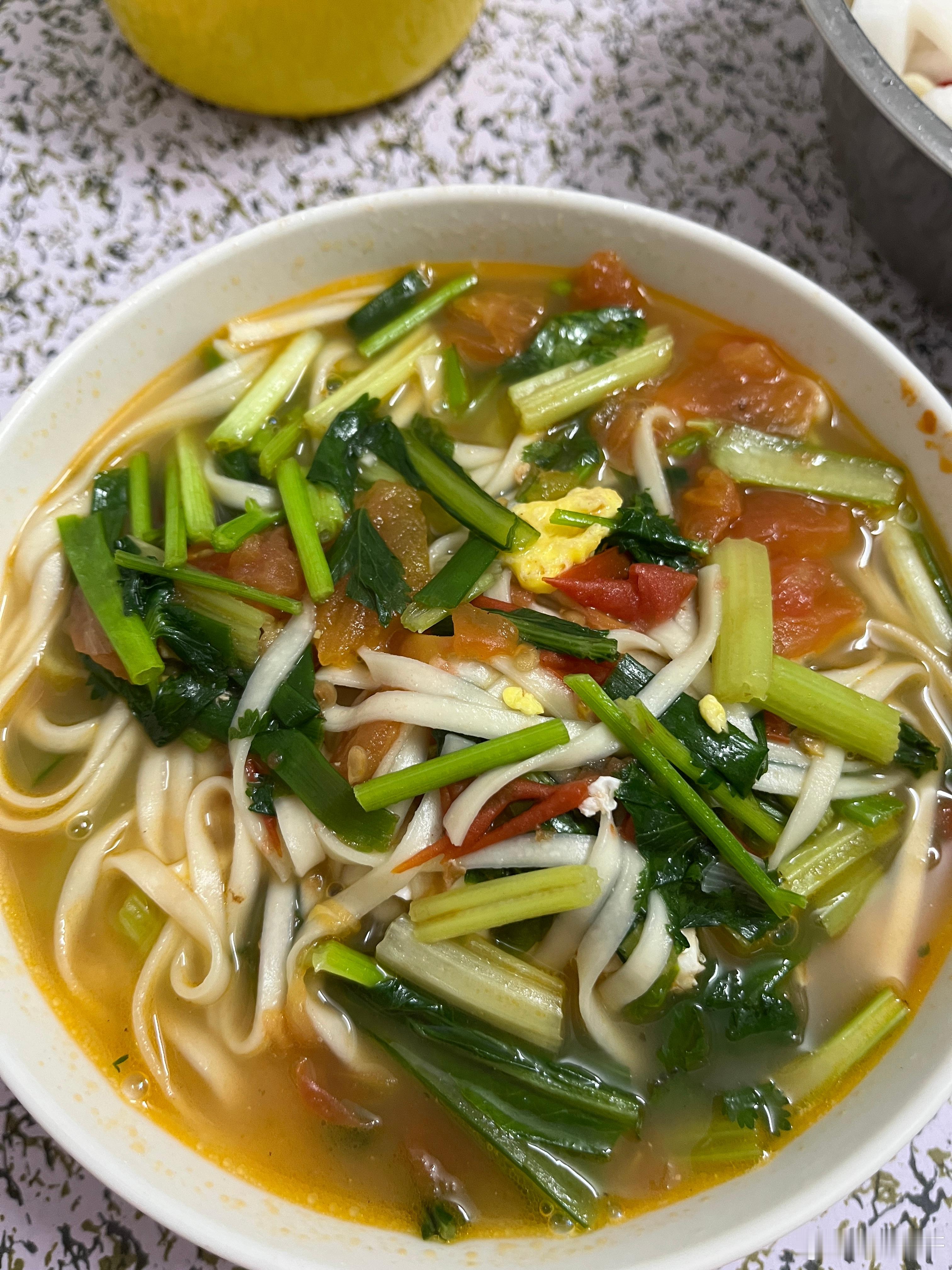 回来得晚,只能煮面吃,番茄鸡蛋面,女儿说好好吃。