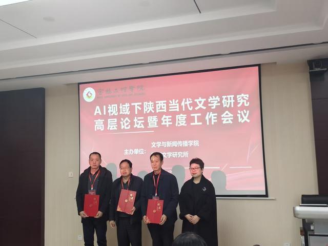 开幕式上,宝鸡文理学院副校长凡明锦致欢迎辞,欢迎各位兼职研究员与优秀作家朋友“回家”,并指出AI时代带来的新机遇新挑战,将为陕西地域文学研究开启更广阔天地,陕西文学研究大有可为。文学与新闻传播学院院长孟改正、陕西文学研究所所长孙新峰分别致辞并作年度工作汇报。会议还为阳光报等颁发了“陕西文学研究优质宣传单位”奖牌,为刘峰等特聘研究员颁发了“陕西文学研究突出贡献奖”,为陈啊妮等特聘研究员颁发了“年度优秀研究员”荣誉证书,为杜文娟等重点研究作家颁发了“年度优秀重点研究作家”荣誉证书,为阿探等特聘研究员颁发了“陕西文学研究勤英奖”等奖项,并举行了郑金侠等新聘研究员与王琪等新聘重点研究作家的聘用仪式。