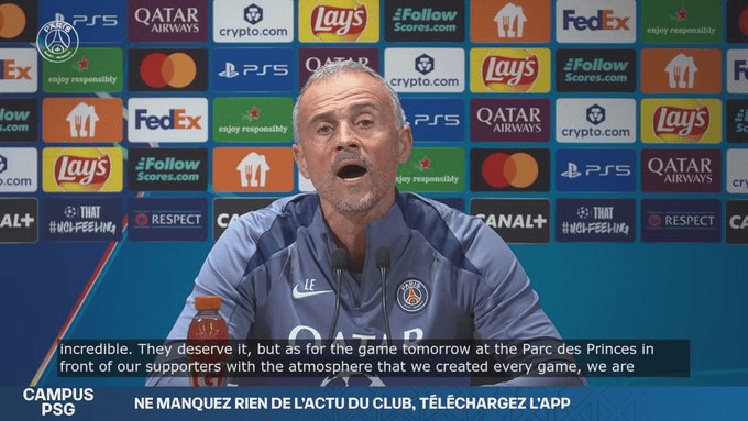 虎扑11月03日讯巴黎圣日耳曼主教练路易斯-恩里克出席对阵拜仁慕尼黑的欧冠赛前发布会。