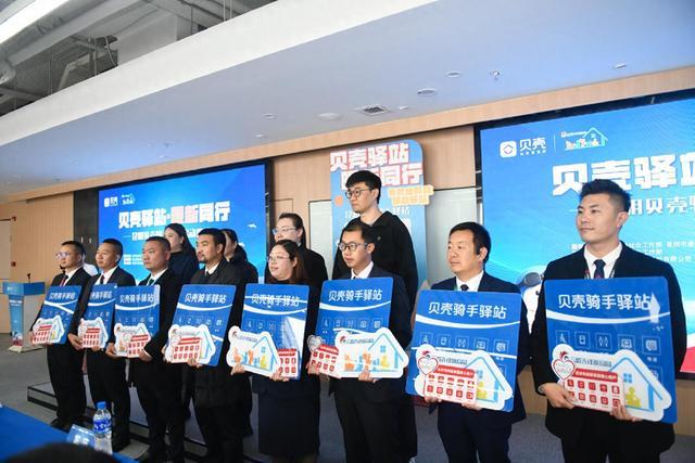 启动仪式上,首个“贝壳骑手驿站”正式揭幕。驿站按照“一室多用”“实用适用”理念打造,提供休息、如厕、饮水、充电、电话、打印复印等8项标准化服务。部分具备条件的门店还额外提供热饭、紧急用药、就餐、充气4项服务。“在奔波间隙能有个地方休息、充电、躲雨等等,为我们提供了很多方便,就像有了一个临时的家,很踏实很暖心。”顺丰小哥王堰辉说。