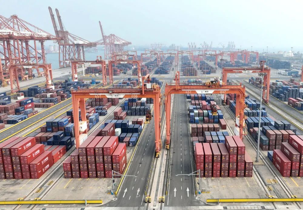 ↑10月29日拍摄的唐山港京唐港区集装箱码头堆场(无人机照片)。