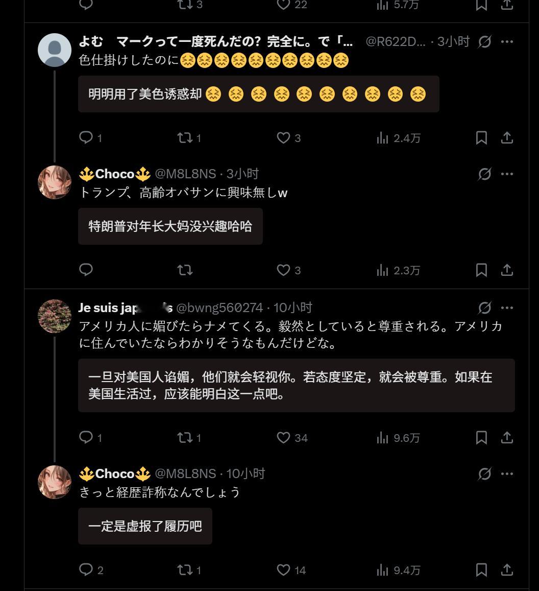 🔻日本网民说:“高市早苗外交,失败啊”、“特朗普不喜欢年纪大的。”