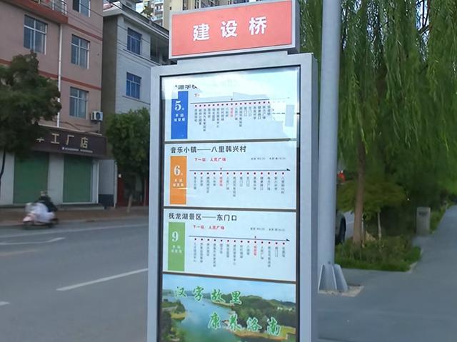 这块写着“建设桥”的新站牌,即将为洛南市民出行提供清晰指引。记者凑近细看,只见钢化玻璃面板下,5路、6路、9路公交线路图用不同颜色标注,除了首末班车时间,下方还嵌着一块洛南风景的插画,“汉字故里・康养洛南”的绿色字体格外醒目。