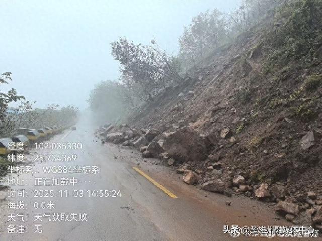 2025年11月3日下午,因连续降雨,武定县白环公路古黑路口—营盘村入口K10+704路段山体滑坡山石滑落,路段随时可能再次发生塌方和山石滚落,不具备通行条件,导致交通中断,请过往车辆绕行,目前该路况正在组织抢修中。阴雨天行车请牢记“降速、控距、亮尾”,保持冷静,注意观察路况,谨慎驾驶,确保自身和他人的安全。(武定县公安局交通管理大队2025年11月3日15时)
