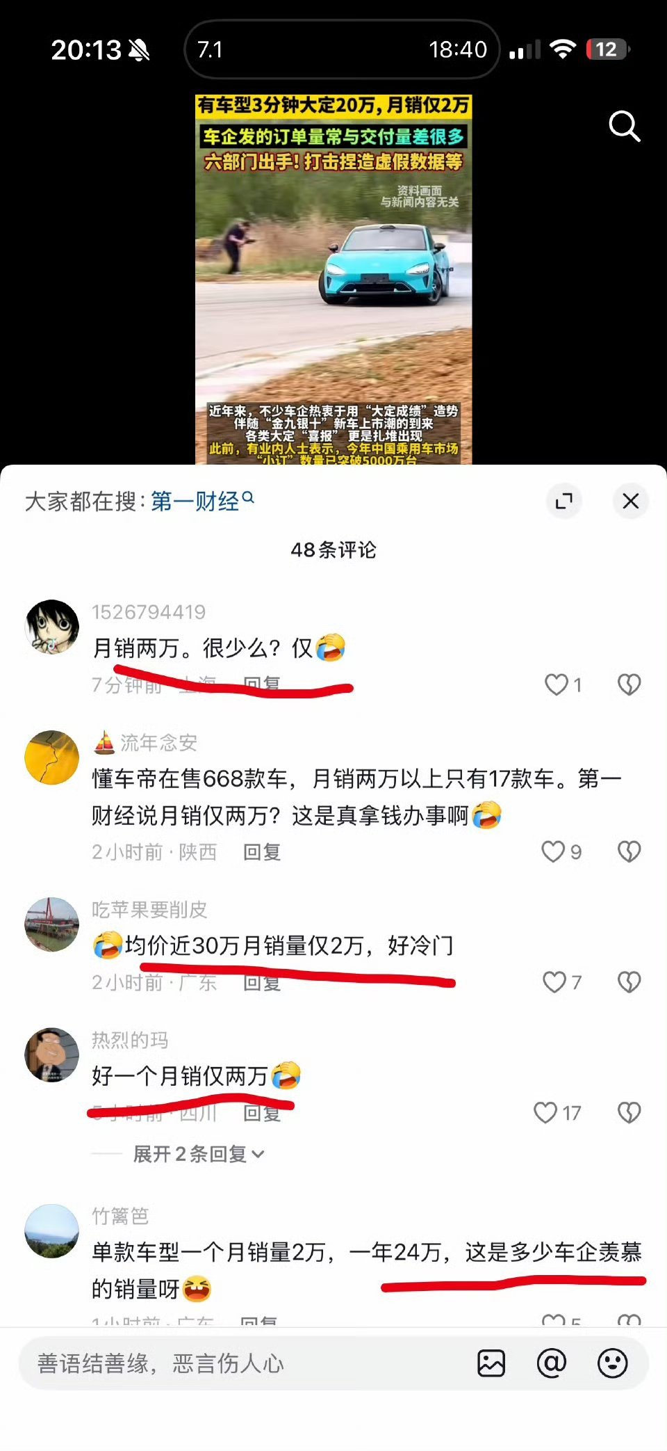 我也给第一财经传播下,竟然看不上小米yu7月销2w台,还认为人家有泡沫。
