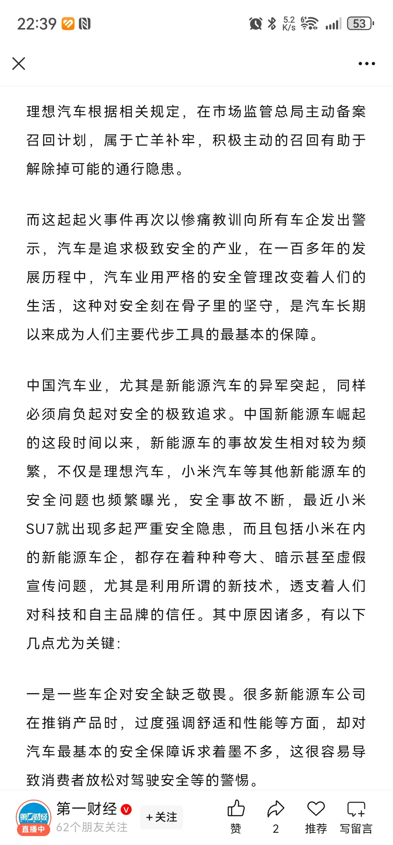 谁说第一财经被制裁了,《发现安全隐患,车企都应第一时间主动召回 》、《安全是汽车业的生死符》,继续酷酷的批啊…