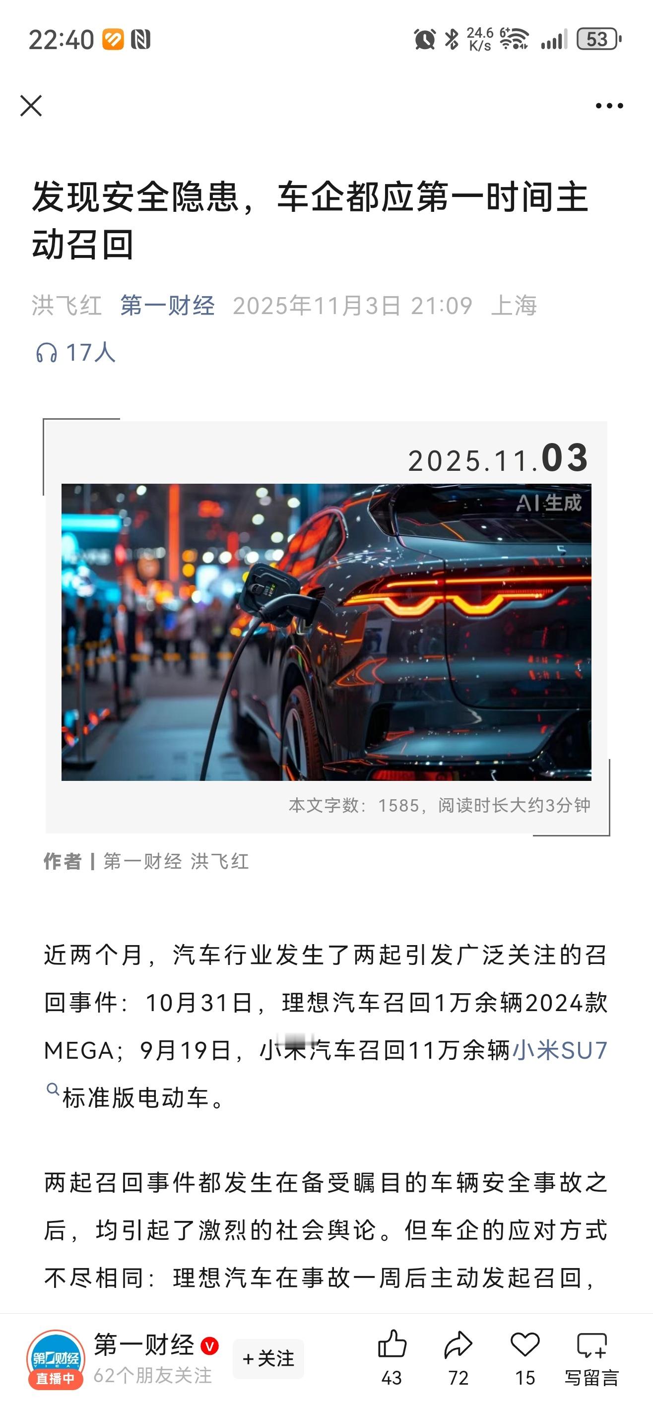 谁说第一财经被制裁了,《发现安全隐患,车企都应第一时间主动召回 》、《安全是汽车