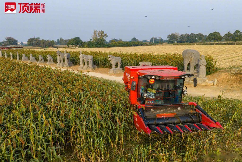 11月3日下午,在河南巩义宋陵的永裕陵、永泰陵畔,一幅跨越时空的丰收画卷正缓缓展开。现代化收割机轰鸣而行,穿梭于高粱地间,一片如火的高粱被迅速纳入仓中。这不仅仅是一次农事的丰收,更是一场跨越时空的对话。一边是沉睡千年的石像生,一边是翻滚的金色稻浪,共同构成了一幅保护与发展、历史与当下交相辉映的独特画卷。