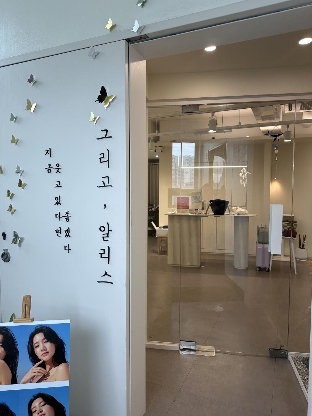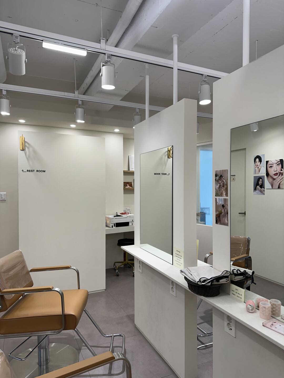 来小韩当然要体验一下这里的妆造啦 这次化妆室选择了Geurigo Alliseu 化妆➕发型一共花了2h 小姐姐很细心 给我化妆很仔细 还询问了我喜欢的妆面 沟通后选择了比较清透感的韩系妆容 粉粉哒 真的很温柔 整体来说化妆是我想要的清透感韩妆 眼妆是淡淡的粉色 非常减龄 加上淡粉的腮红 搭配淡粉的口红和唇釉 blingbling的 看着都好想亲一口 化完妆逛街下午茶 回头率都还好高 一秒get明星团队改造原来如此简单