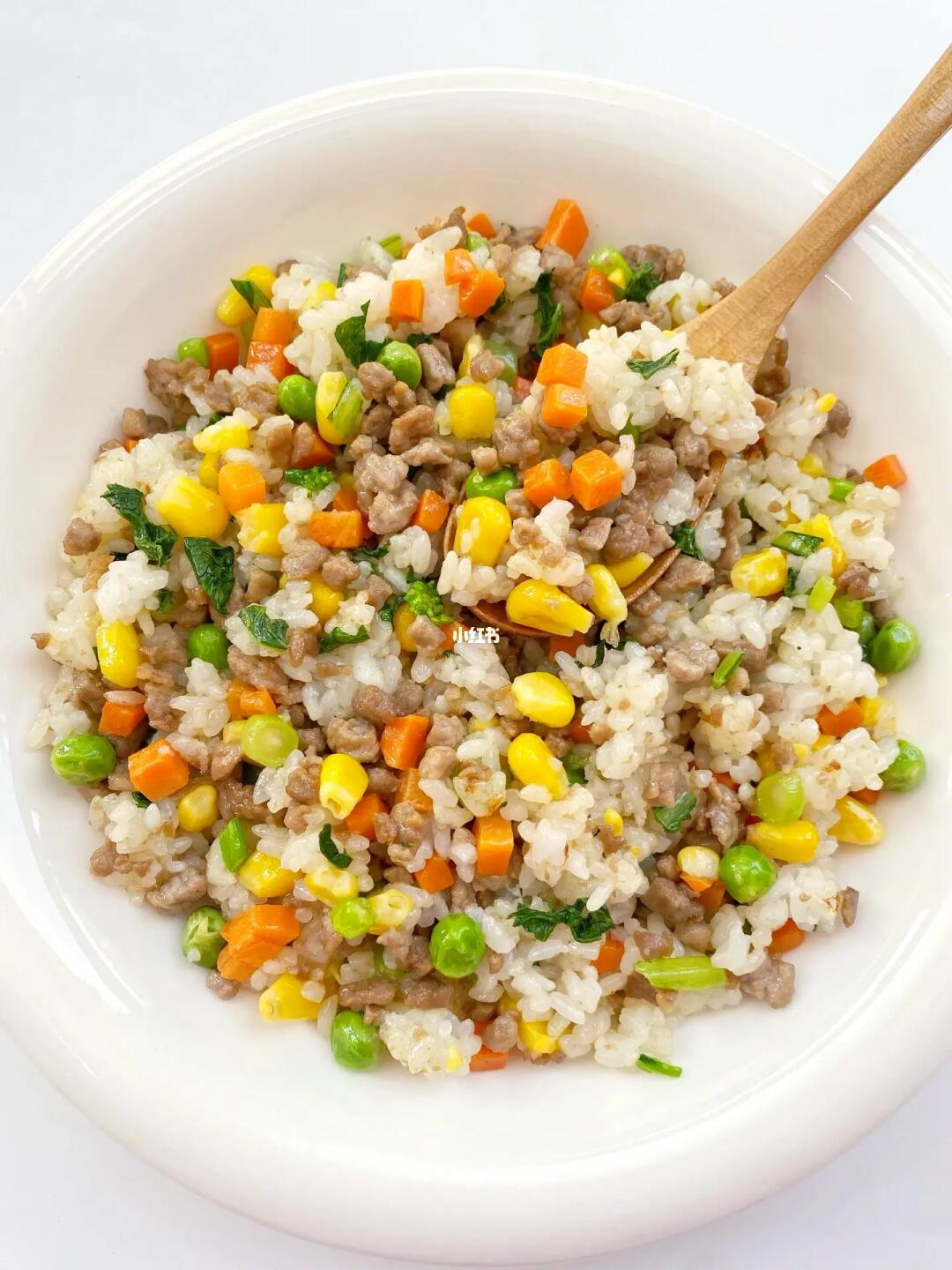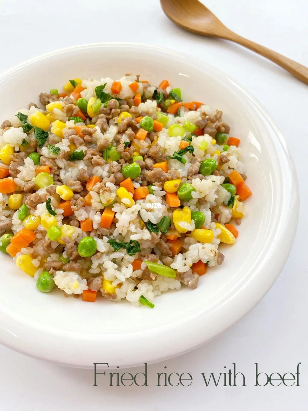 🌈今天来给大家分享一款饭渣宝宝都会吃光光的牛肉蔬菜炒饭,一口下去有菜有肉有主食,营养满满 又口感丰富,不想做法的时候炒上一盘,宝宝一样可以吃的敲满足‼️