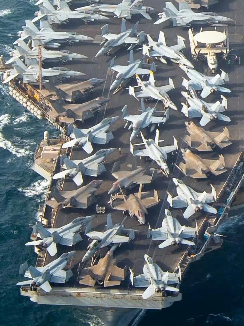 美航母停满舰载机,非常壮观,但F-35的颜色让全世界都笑了近日,一张美军航