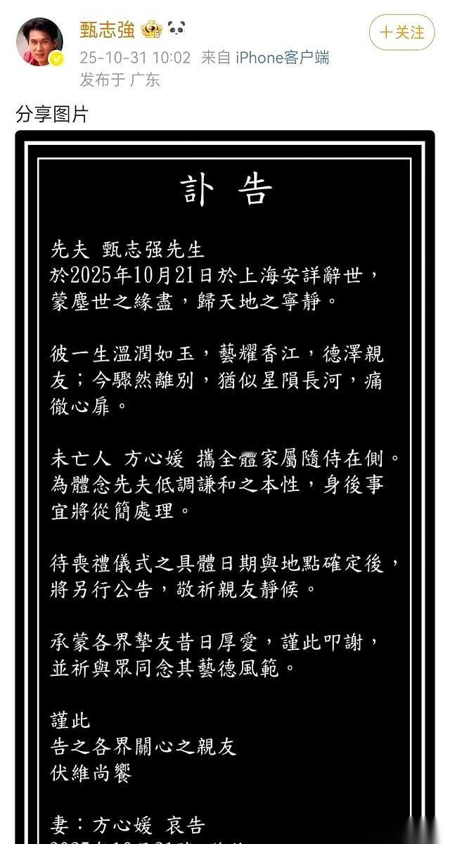 人走了,他藏了一辈子的秘密才敢见了光。 最帅的“展昭”甄志强,没了。 59岁,在最爱的高尔夫球场上,人说没就没了。 大家都在惋惜,说他走得突然。 可我看到他那个隐婚多年的妻子出来发讣告,心里咯噔一下,这才是最让人难受的。 他对外一直说自己单身,不婚主义。 结果呢?他有家,有漂亮的妻子,据说还有女儿。他把她们藏得严严实实,不让任何人知道。 为啥啊? 还不是因为年轻时那段相差23岁的“母子恋”,被骂惨了,“软饭男”这顶帽子,一戴就是半辈子。 唾沫星子能淹死人,他是真的怕了。 所以他用后半生,拼命想活成一个不被人议论的普通人。 在上海安家,做点小生意,闲了就去打打球,发发视频,看上去云淡风轻。 可谁知道,这份“正常”的幸福,是他小心翼翼藏起来的。 他大概是想,等自己老了,彻底没人关注了,再把妻子女儿介绍给大家吧。 可老天爷没给他这个时间。 你说讽刺不讽刺? 他用尽力气想摆脱“谈资”的命运,最后,他最珍视的、藏了一辈子的家庭,却在他死后,成了我们今天最大的谈资。 一声叹息。 人这一辈子,到底是在为自己活,还是为别人的眼光活。 真说不清。